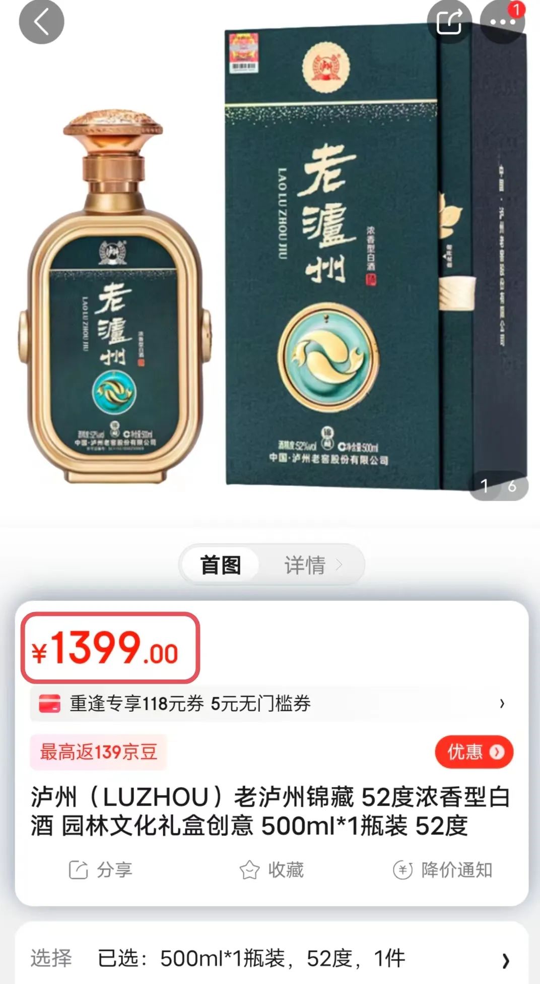1、泸州老窖正统出身,纯粮酿造的52°优级浓香型白酒,精美园林文化礼盒包装,送人自喝倍有面。
