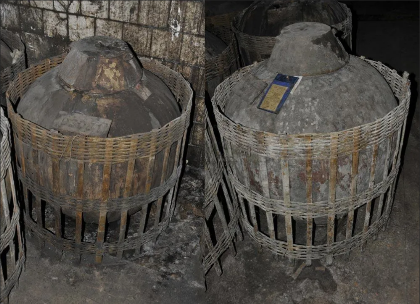 经由“双国宝”酿造而成的1952年的泸州老窖金奖年份老酒,别看坛子破破烂烂的,竟创纪录的拍出了1035万元的天价。另一坛1963年的也拍得了644万,几口就是一套房!
