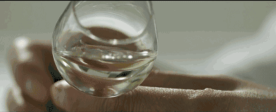 轻轻摇动酒体,酒滴沿着杯壁向下缓慢滚动,就像美人的眼泪一般,随后,剩余的酒液散落在杯壁上,仿佛夜空闪烁的满天星。