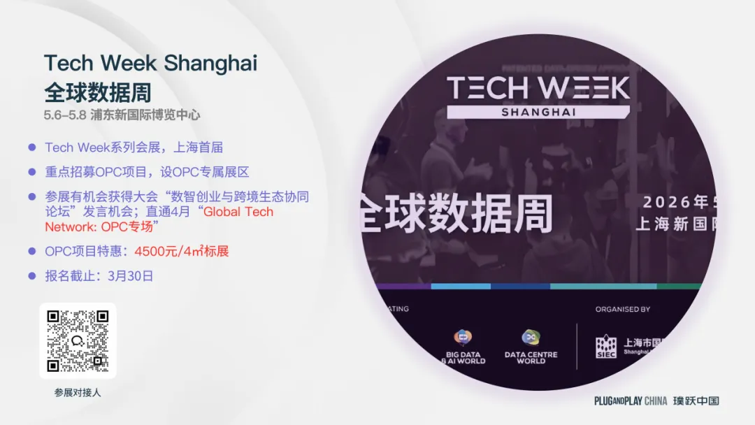 · 参展有机会获得大会“数智创业与跨境生态协同论坛”发言机会;直通4月“Global Tech Network: OPC专场” · OPC项目特惠:4500元/4㎡标展