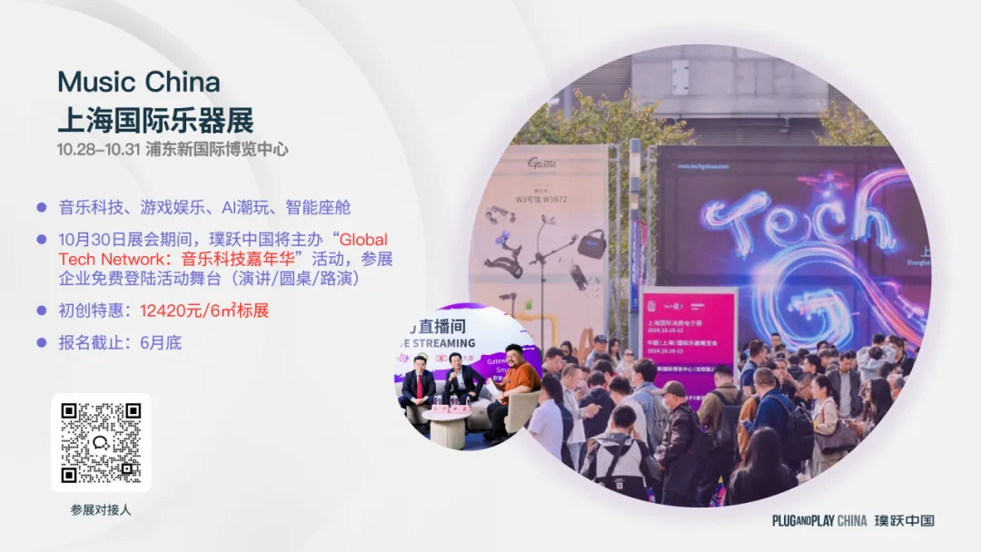 · 10月30日展会期间,璞跃中国将主办“Global Tech Network:音乐科技嘉年华”活动,参展企业免费登陆活动舞台(演讲/圆桌/路演)