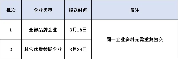 结合组展安排进度,请于2026年3月16日、24日按上述报送方式分批报送。具体如下: