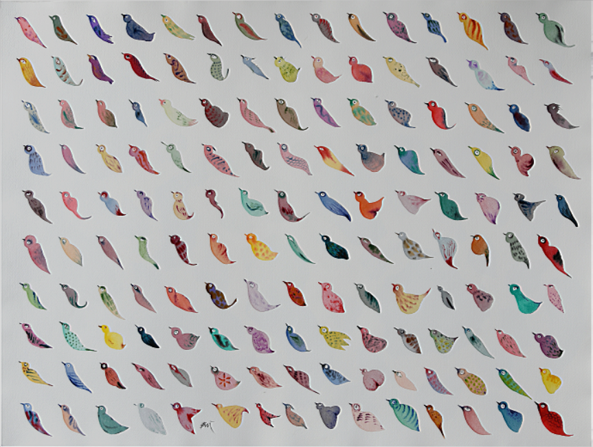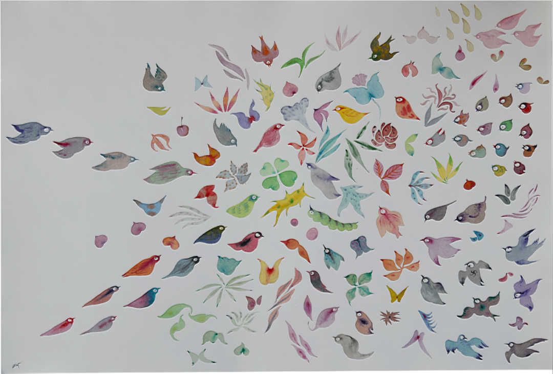 鸟虫阵 手工水彩纸 1107mm x 785mm 2021