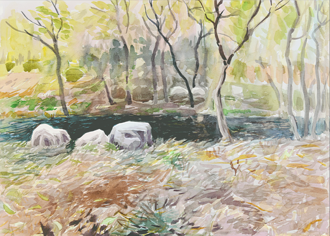 在记忆中流逝的山谷 手工水彩纸 1107mm x 785mm 2023