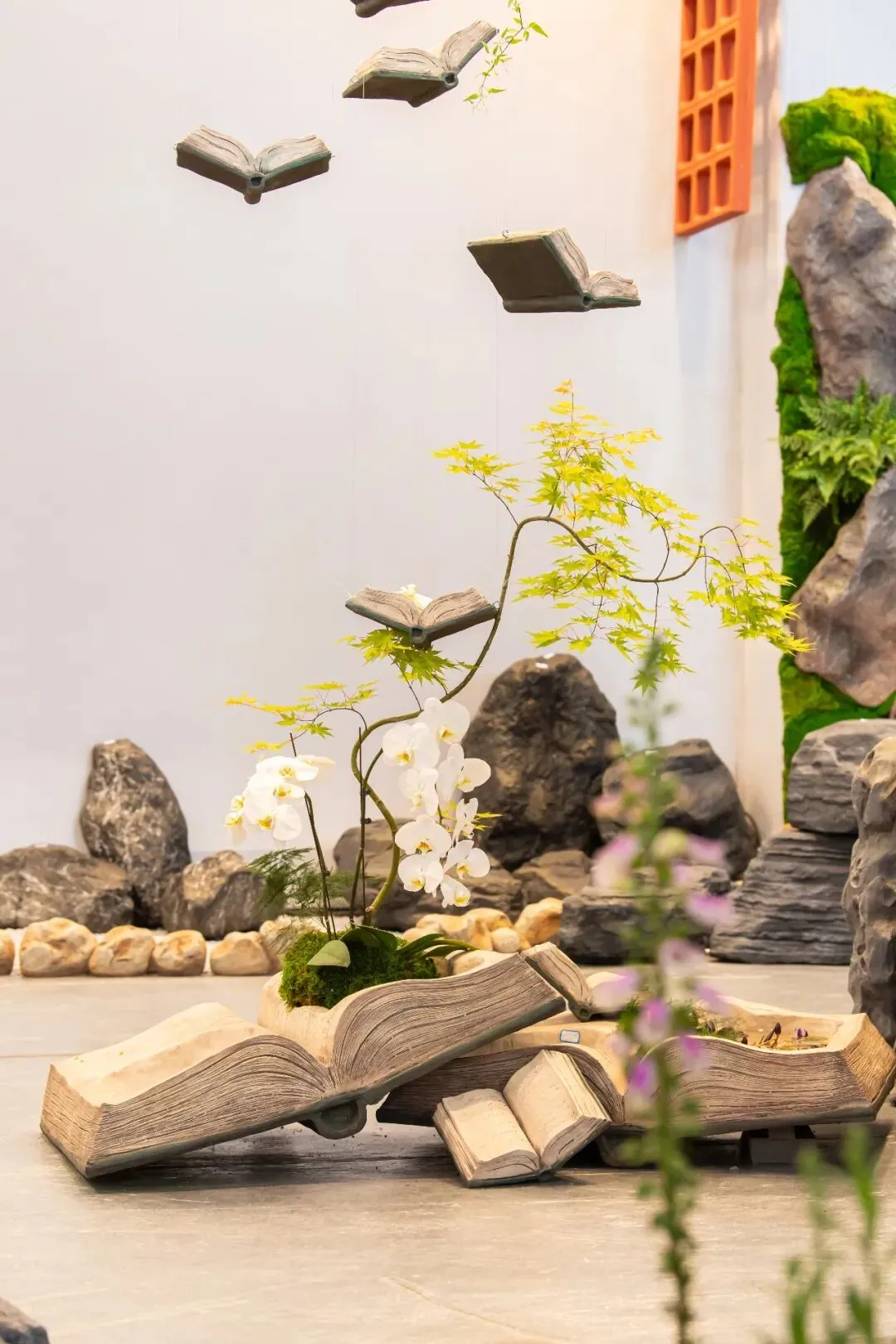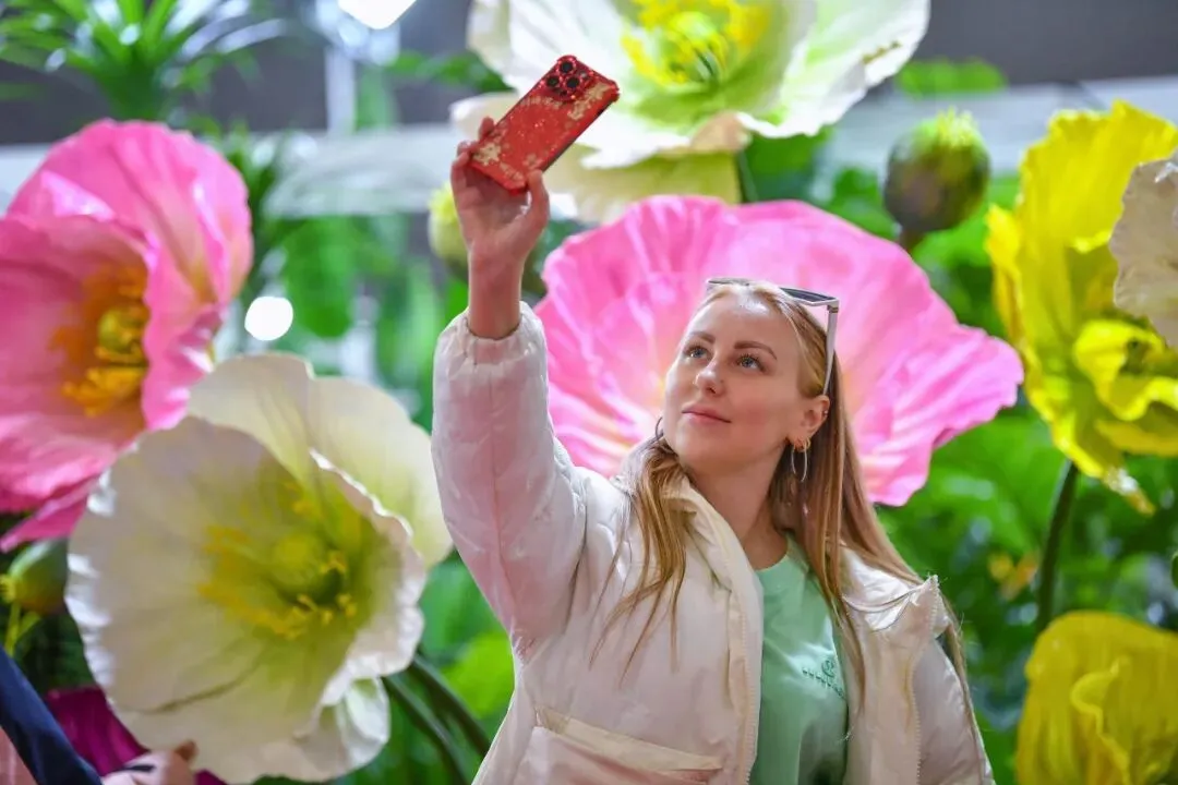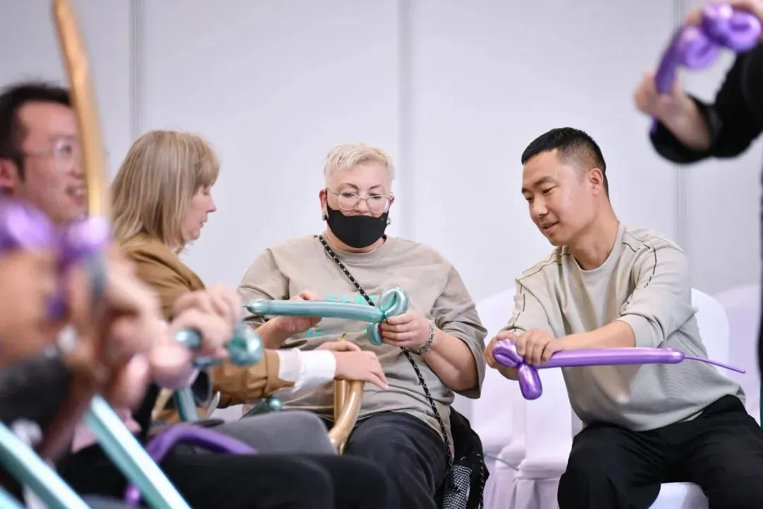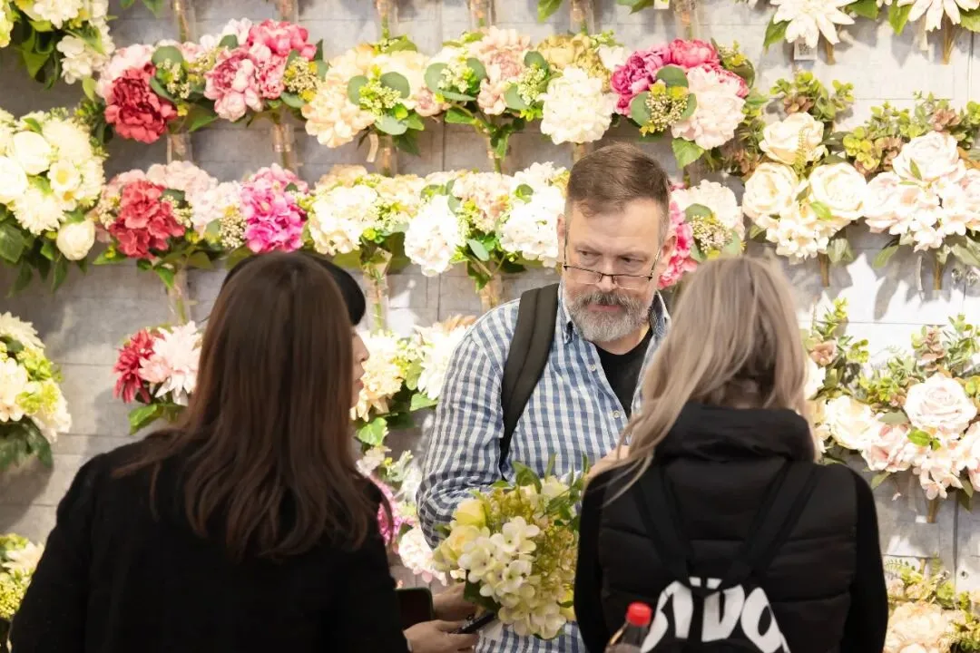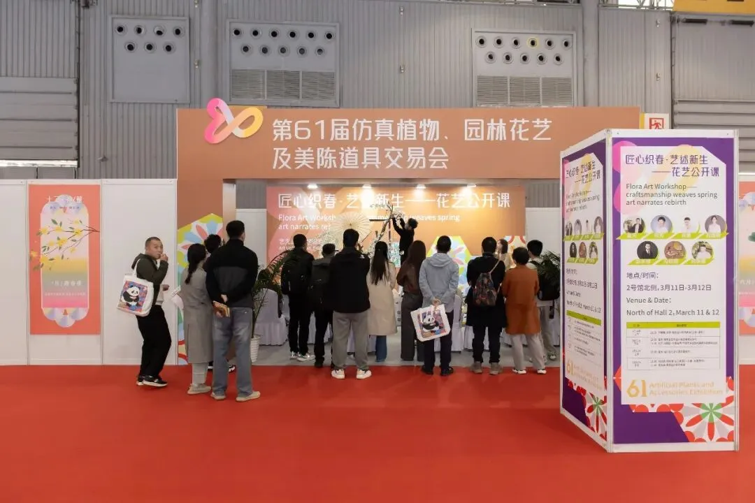 展馆内的花艺美陈演示区业已成为全场的焦点所在,以仿真花材演绎自然之美,引得大家驻足围观。交易会近年持续推出“花艺公开课”系列,今年以“匠心织春·艺述新生”为主题,特邀多位花艺老师进行主题分享和现场花艺展示。老师们将通过精湛的技艺与独特的创意,演绎花艺的无限可能,为观众呈现一场高雅唯美的视觉盛宴,引领大家感受花艺与生活交融的艺术魅力。