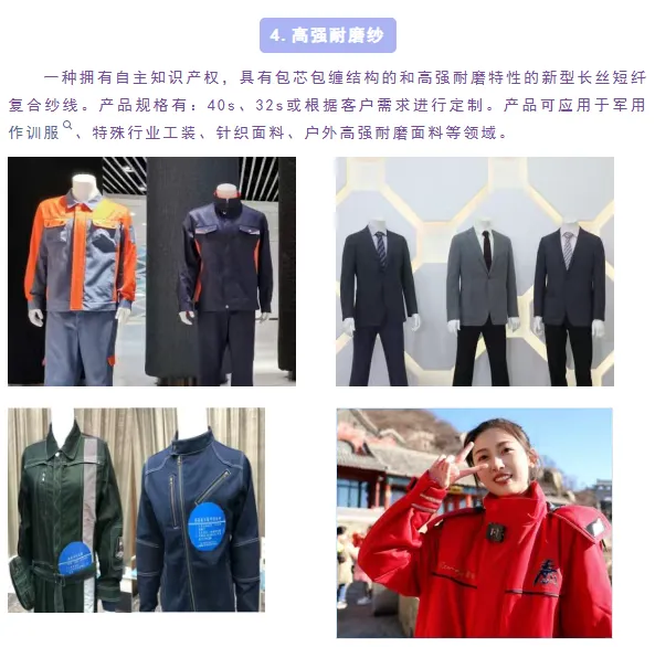 目前,企业自主研发的包芯包缠结构高强耐磨纱线、高支汉麻 / 棉混纺纱、单向导湿纯棉纱线、高导电率腈纶 / 色涤混纺导电纱线、高导电腈纶基导电纤维、耐高温芳纶导电纤维、光暖保温纤维,以及汉麻可机洗免烫衬衣面料、可机洗针织西装面料、抗静电保暖牛仔面料等一系列功能性新产品,均精准贴合下游应用场景与市场需求,以技术创新赋能纺织产业高质量发展。