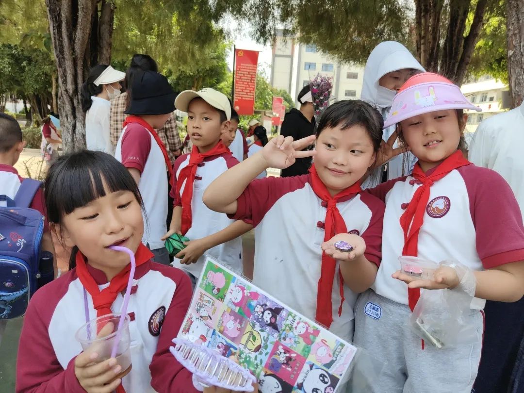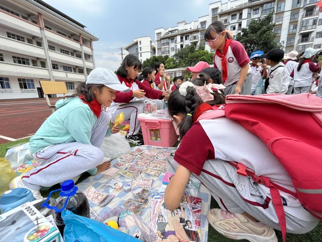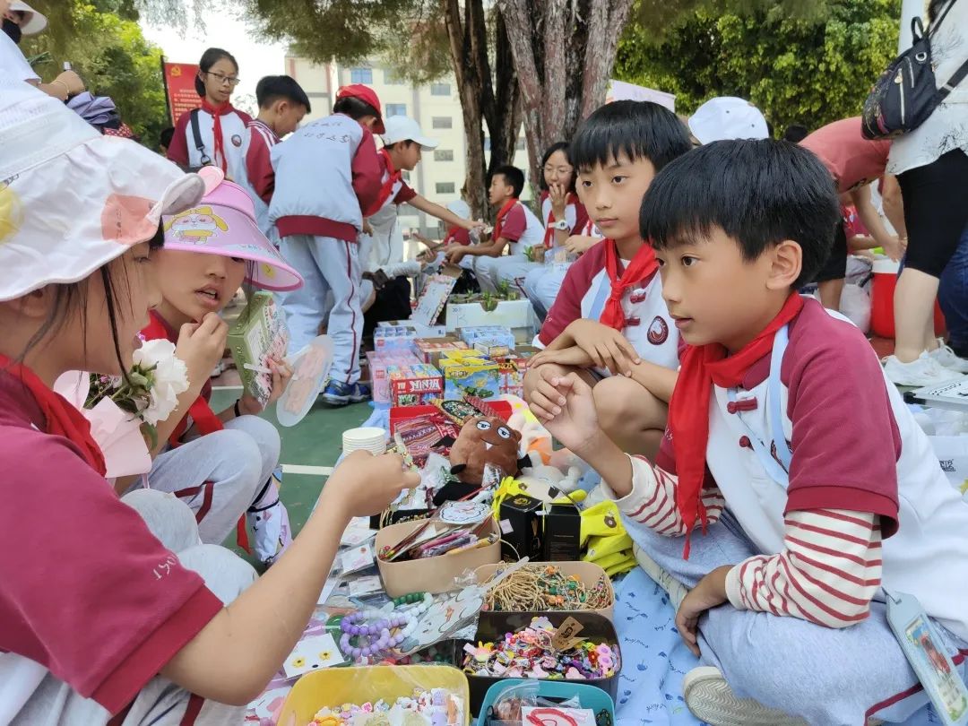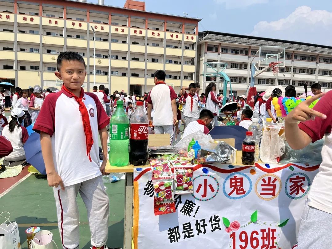 交易会上,“小老板们”销售着自己的商品:书籍、玩具、手工制品、自制美食,琳琅满目应有尽有。有的同学给每件商品标上价格,有的学生精心制作了海报,还有的同学发起了传单。操场上叫卖声此起彼伏,热闹非凡,大家纷纷被吸引驻足,参与其中挑选着自己心仪的物品。“小老板们”在照顾自己的生意之余,还不时地为自己的同学拉拢生意,全场一派和乐融融。