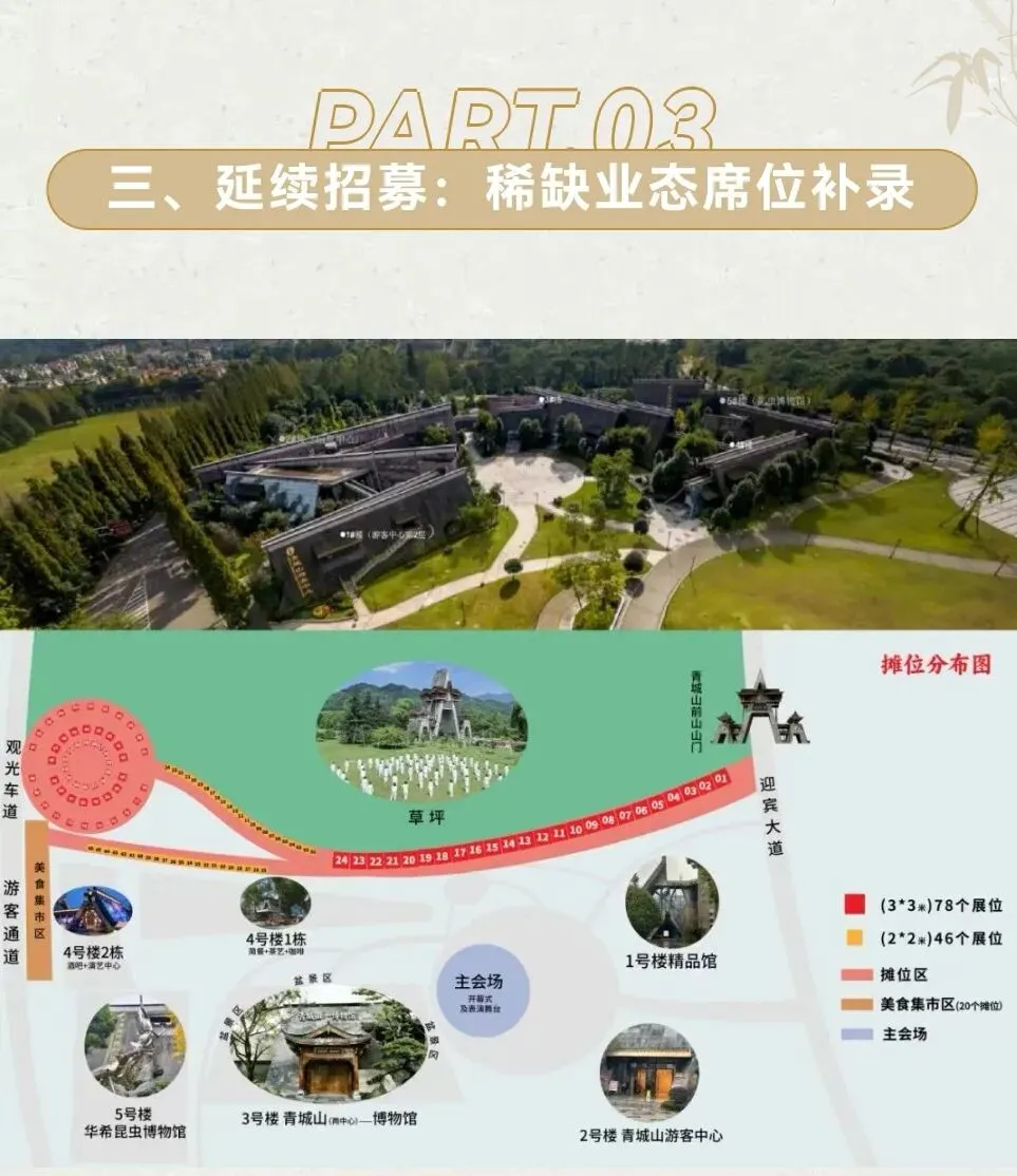 2026 年 4 月 28 日至 5 月 7 日,中国首届长江(岷江源)黄河大联盟暨都江堰第十届熊猫杯奇石古玩盆景博览会,天雕入围作品遴选(四川站),将在青城山游客中心隆重揭幕。这里不仅是长江黄河双流域奇石的首次跨界对话,更是汇聚 50 万 + 高质客流、超千万级销售体量的文旅融合平台。现面向全国藏家、文创品牌、非遗匠人及商业伙伴,开放核心展区与黄金摊位的限量征集,席位稀缺,先到先得,满额即止!涵盖全国各地极具影响力的观赏石(奇石)协会、充满活力的四川赏石团队、经验丰富的赏石收藏家,还有专业的各(奇石)专委会。“莫老爷论赏石文化”公众号本届精品展以 “江河同源·石韵双辉” 为主题,设立两大征集通道,涵盖名家典藏与精品荟萃,为每一方奇石提供闪耀的舞台。- 礼遇配套:三天两晚专属接待(含欢迎晚宴、答谢午宴,其余自助餐,赠精美伴手礼)- 参展费用:1000元/方(含全程展期);小件作品包柜2000元,每柜2件作品参评- 礼遇配套:三天两晚专属接待(含欢迎晚宴、答谢午宴,其余自助餐,赠精美伴手礼)送展2方:三天两晚专属接待+博物馆(筹)贵宾会员+5年免费参观+5年工作午餐+5年隐秀尚庭酒店门市挂牌价3.5折,送展3方及以上:三天两晚专属接待+博物馆(筹)终身荣誉会员+10年免费参观+10年工作午餐+10年隐秀尚庭酒店门市挂牌价3折,展会期间免费游览青城山(需预约)本届博览会官方指定接待酒店——隐秀尚庭酒店。酒店坐落于青城山脚下,坐拥“青城天下幽”的静谧景致,是以川西民居院落为特色的精品酒店。园内长廊婉转,一步一景,更可体验手磨豆花等人文雅趣。酒店集特色餐饮、精致客房与多功能会议服务于一体,拥有多个宴会厅可容纳千人及多个特色包间,旨在为各位嘉宾与藏家提供一处将自然、文化与高端服务相融合的下榻与商务交流之所。• 获奖作品及主办方甄选佳作,将获得青城山(两中心)一博物馆(3号楼)(筹)永久馆藏资格,并有机会入驻博物馆专属销售位(具体细则详洽)。• 本次精品展特邀国内有影响力的高级顾问团与本地知名赏石专家,以电子评分器共同打分。天然观赏石(国家禁采禁售类除外)、宝玉石、矿物晶体、大理石画、黄龙玉、海洋玉髓、南红、战国红、陈炉石、黄蜡石等各类石艺珍品。(作品需配底座,建议尺寸≤60cm,重量≤100kg)- 备注:请提前提交展品图文资料,审核通过后按缴费顺序安排展位。- 备注格式:“名人名石厅/精品厅 + 姓名 + 手机号 + 参展位” ✍️• 展厅纪律:参展商须服从组委会统一管理,按规定时间完成布展与撤展。展位内禁止使用大功率电器,禁止明火,确保消防安全。展位不得私自转租、转包或用于与展会无关的经营活动。布展及参展期间,须佩戴组委会发放的参展证,凭证入场。展品安全:组委会提供公共区域安保,但展品在运输、布展、展出及撤展期间的安全,由参展方自行负责。建议参展方自行购买专项艺术品保险。✍️人身与财物:参展期间,请妥善保管个人财物,组委会不承担因盗窃、遗失、损坏等造成的损失。✍️不可抗力:如因地震、极端天气、疫情、政策变动等不可抗力导致展会延期或取消,组委会将协商处理已缴费用,但不承担由此产生的间接损失。✍️最终解释权:主办方有权根据实际情况调整展位安排、活动流程及现场管理措施,并对本须知及声明保留最终解释权。聚焦“非遗+文创”融合消费新场景,我们特设 124个黄金摊位,邀请最具创意与匠心的品牌共创烟火市集。✍️• 收费标准:3M*3M 1800元/个;2M*2M 1000元/个,角位另加200元(敬请注意:展棚不含围布,押金200元,支付租金时一并缴纳)✍️• 黄金位置:位于青城山(前山大门)游客中心,客流必经之地✍️- 备注:请提前提交资料,审核通过后自选展位。✍️- 重要提示:缴费后如未按时参展,费用不予退还。- 备注格式:“文创摊位区 + 姓名 + 手机号 + 3M3M / 2M2M 摊位编号” - 奇石主题文创:原生奇石、奇石拓片、镶嵌饰品、文创衍生品- 非遗技艺文创:灌县木雕、青城茶染、竹编、皮影、剪纸等作品及体验- 本土特色文创:深度融合都江堰与青城山文化IP的产品• 核心优势:坐拥全场50万+高质客流,享受主办方统一品牌宣传及活动导流支持,实现品牌曝光与销售转化双重赋能。为打造完整文旅消费生态,上期重点招商板块余留少量稀缺席位,机会不容错过。- 招募品类:“青城四绝”(乳酒、腊肉、道茶、泡菜)、本地老字号小吃(如张醪糟、钟鸭子)、网红人气美食- 场景优势:嵌入非遗街区与美食夜市,共享研学团队与夜间消费人流- 摊位费:暂定(详情咨询组委会)- 价值:地处青城山景区入口1公里核心区,打造“日间文旅+夜间经济”全天候消费场景,享受统一运营与推广支持。