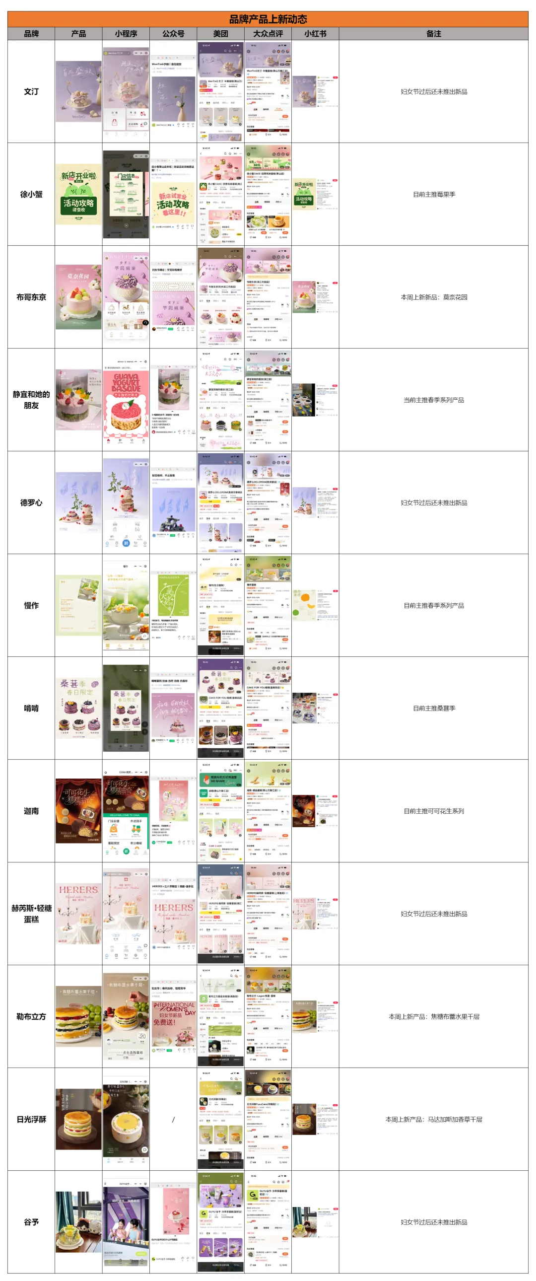 春季新品:春季消费旺季来临,各大新兴蛋糕品牌集中推出春季系列,主打茶系、水果系蛋糕。