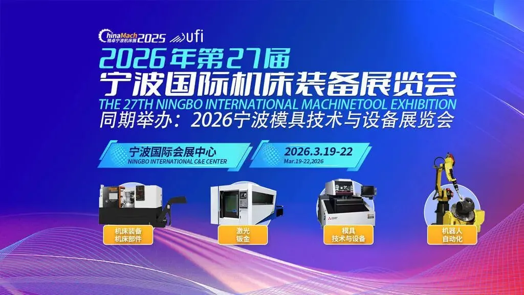 ChinaMach宁波国际机床装备展览会是商务部和宁波市人民政府认可和支持、UFI认证的展会,2026年展会定档于2026年3月19日-22日,在宁波国际会展中心举办。本次展会面积近35000平米,1500个展位,规划机床装备、模具技术与设备、机器人自动化、激光钣金四大板块,同期举办2026宁波模具技术与设备展览会。