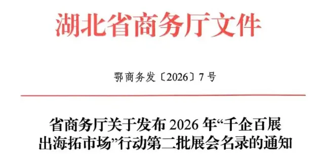 《省商务厅关于发布 2026 年 “千企百展出海拓市场” 行动第二批展会名录的通知》