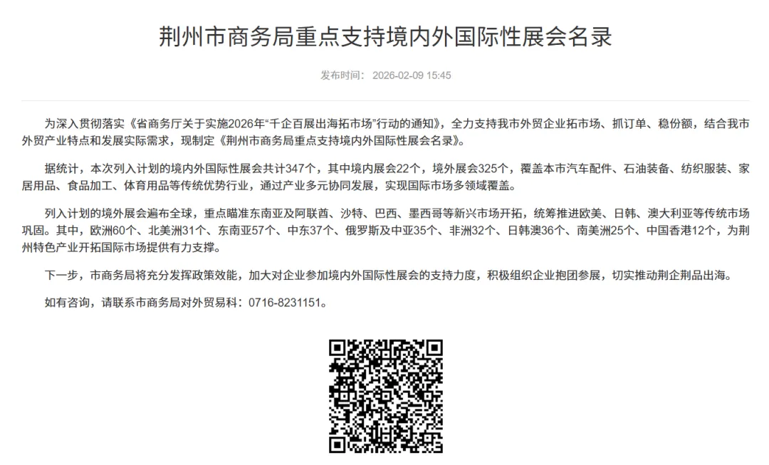 《荆州市商务局重点支持境内外国际性展会名录》