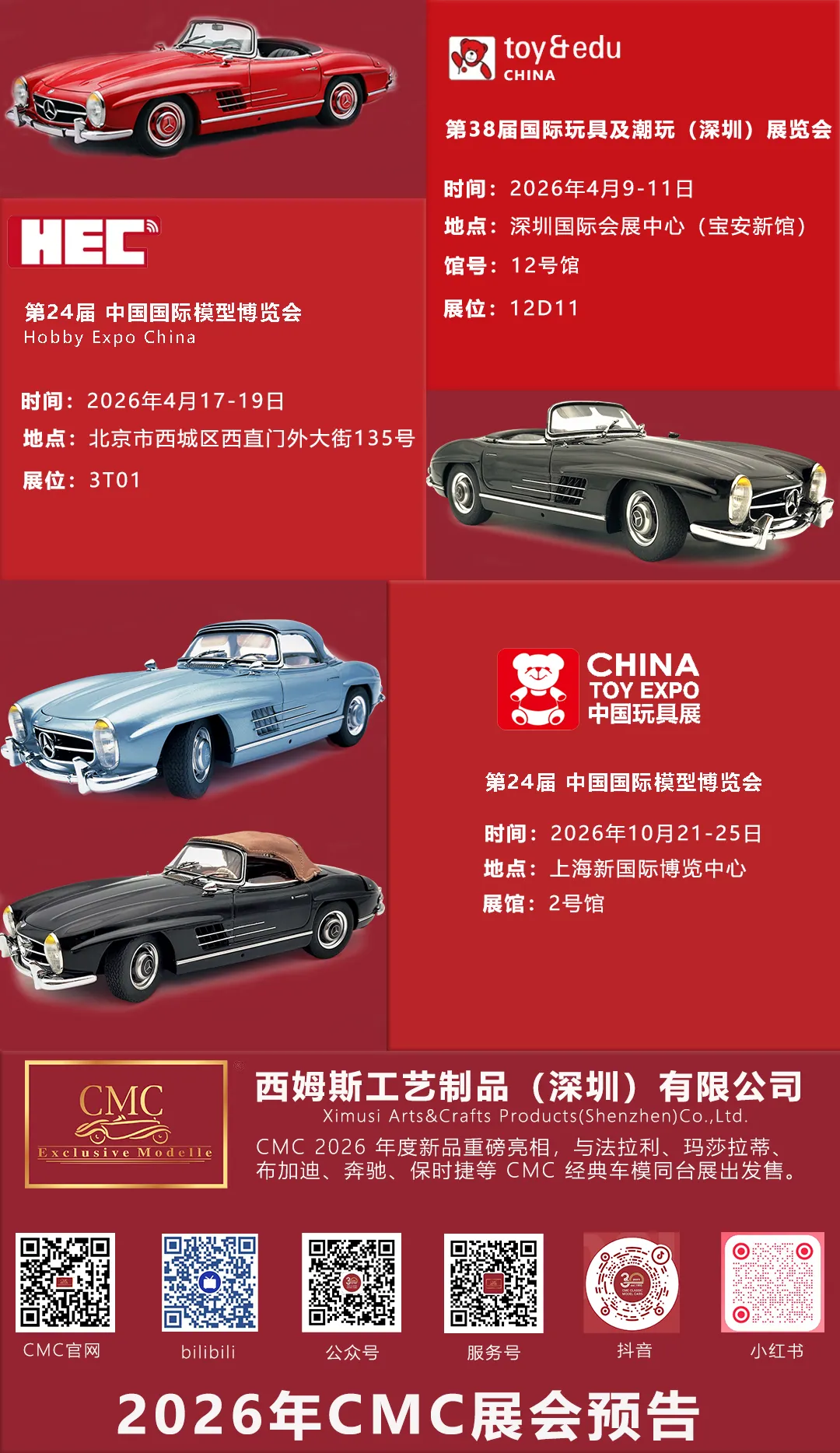 作为开年首场行业盛会,深圳玩具展&潮玩展将于4月9日至11日在深圳国际会展中心(宝安新馆)盛大举行。本届展会将进一步扩容潮玩专馆,集中展示盲盒公仔、手办人偶及精品车模。在潮流与收藏的交汇处,CMC将携年度新品与经典同台,展现汽车模型在收藏领域的独特魅力。