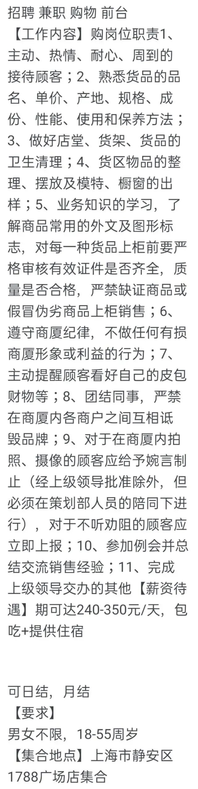 【要求】:20-40岁,会使用智能手机,会看地图,机灵勤快,最低10天