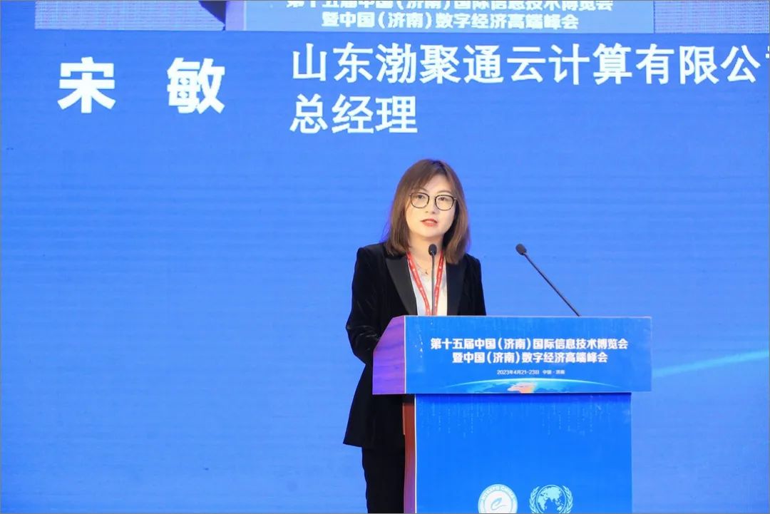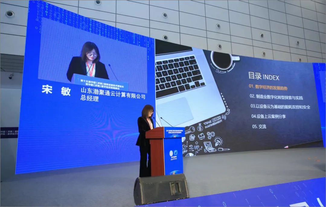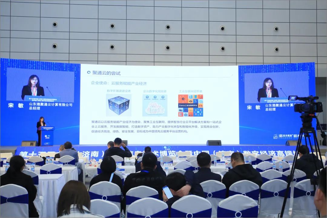 工业和信息化部机关党委、原巡视员、中国电子信息行业联合会副秘书长徐金声、山东省工信和信息化厅一级巡视员高方为活动致辞。在活动现场,山东渤聚通云计算有限公司总经理宋敏女士代表聚通云,发表题为“制造业数字化转型探索与实践”的主题演讲。
