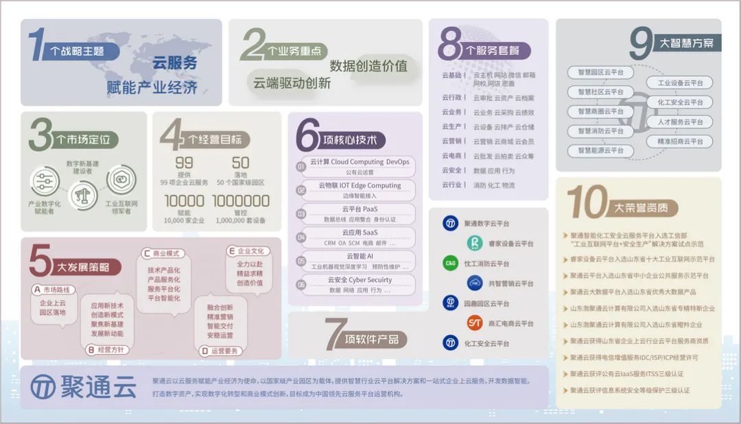 关于【聚通云】│ 聚通云以云服务赋能产业经济为使命,以国家级产业园区为载体,提供智慧行业云平台解决方案和一站式企业上云服务,聚焦工业互联网,开发数据智能,打造数字资产,助力产业转型升级和商业创新,促进经济高效、绿色、安全发展,目标成为中国领先云服务平台运营机构。