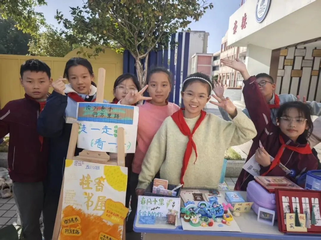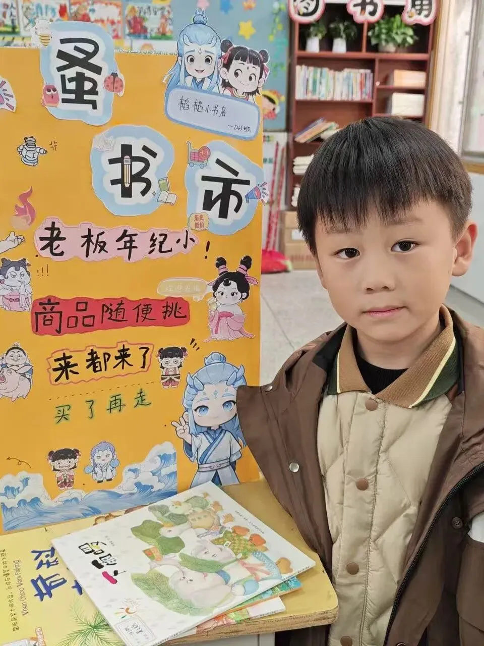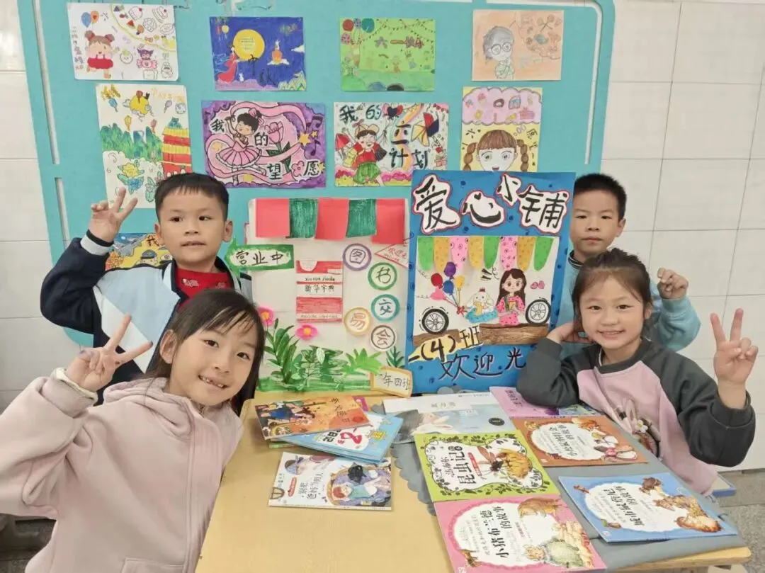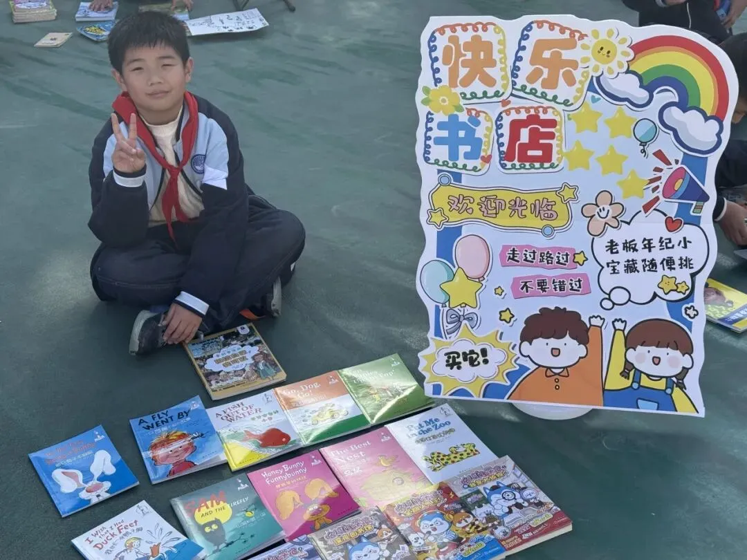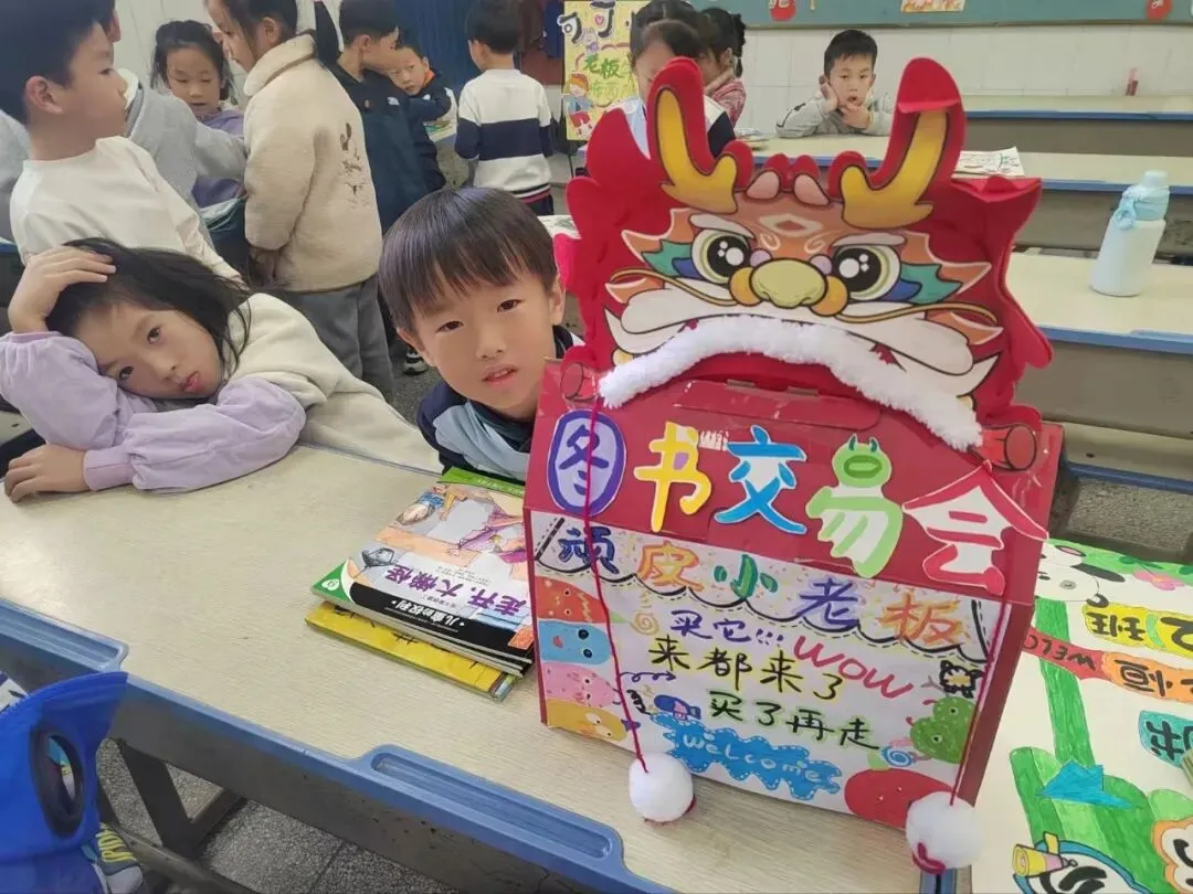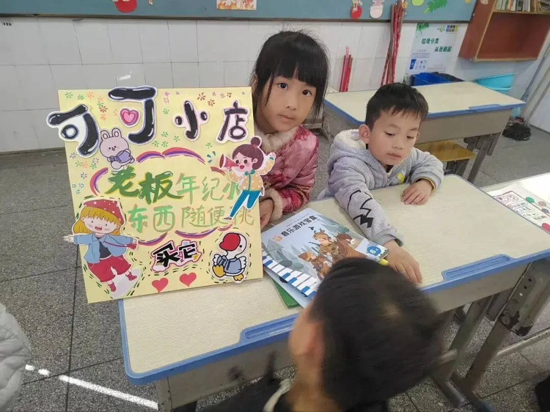 活动一开始,各个班级的“创意书店”就成了校园里最吸睛的风景线。“萌宝杂货店”“智慧杂货铺”……一个个别出心裁的店名,配上一张张由孩子们亲手绘制的精美海报,展现了他们无限的想象力和强大的动手能力。小小的摊位,被精心布置成一个个充满童趣的图书世界,等待着“小顾客”们的到来。
