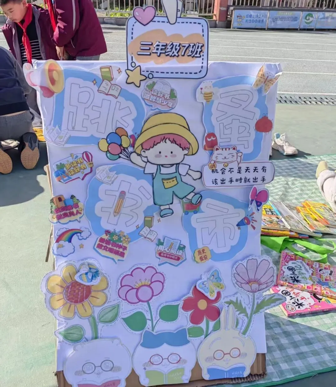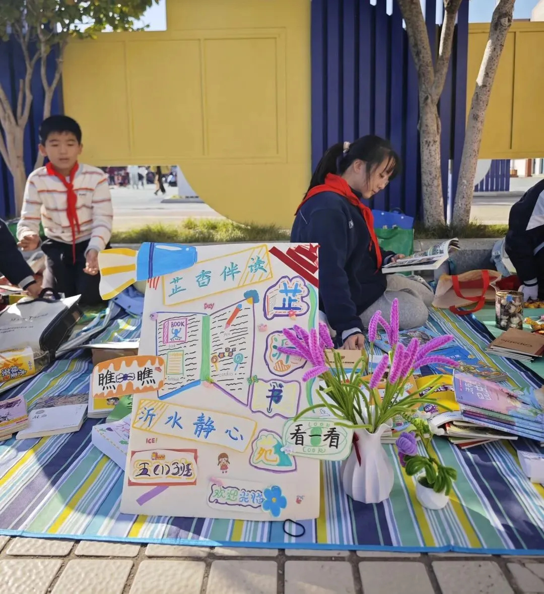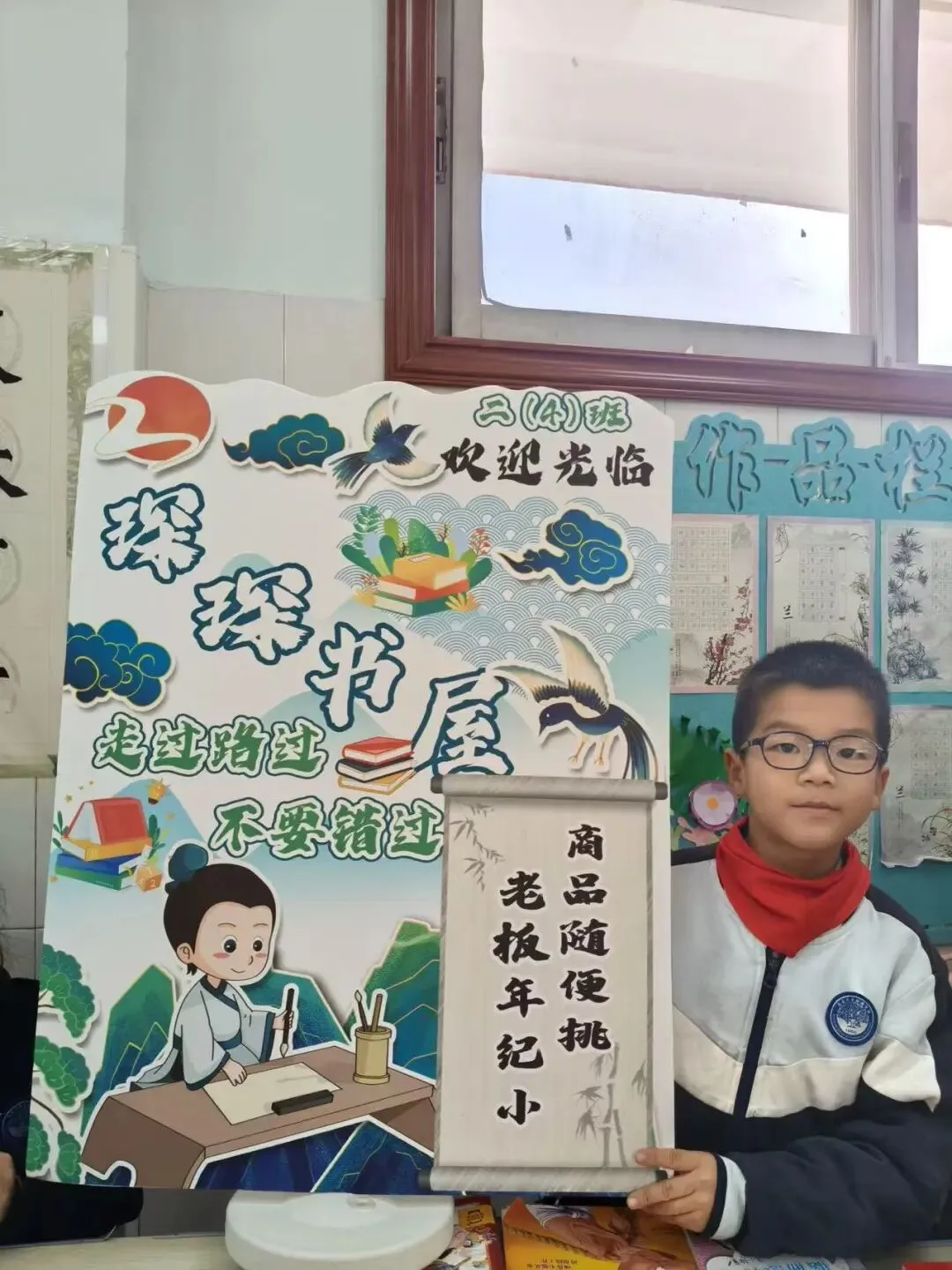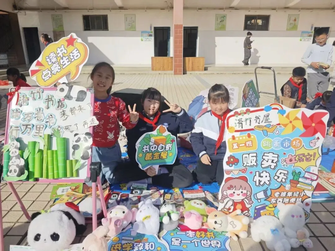 活动一开始,各个班级的“创意书店”就成了校园里最吸睛的风景线。“萌宝杂货店”“智慧杂货铺”……一个个别出心裁的店名,配上一张张由孩子们亲手绘制的精美海报,展现了他们无限的想象力和强大的动手能力。小小的摊位,被精心布置成一个个充满童趣的图书世界,等待着“小顾客”们的到来。