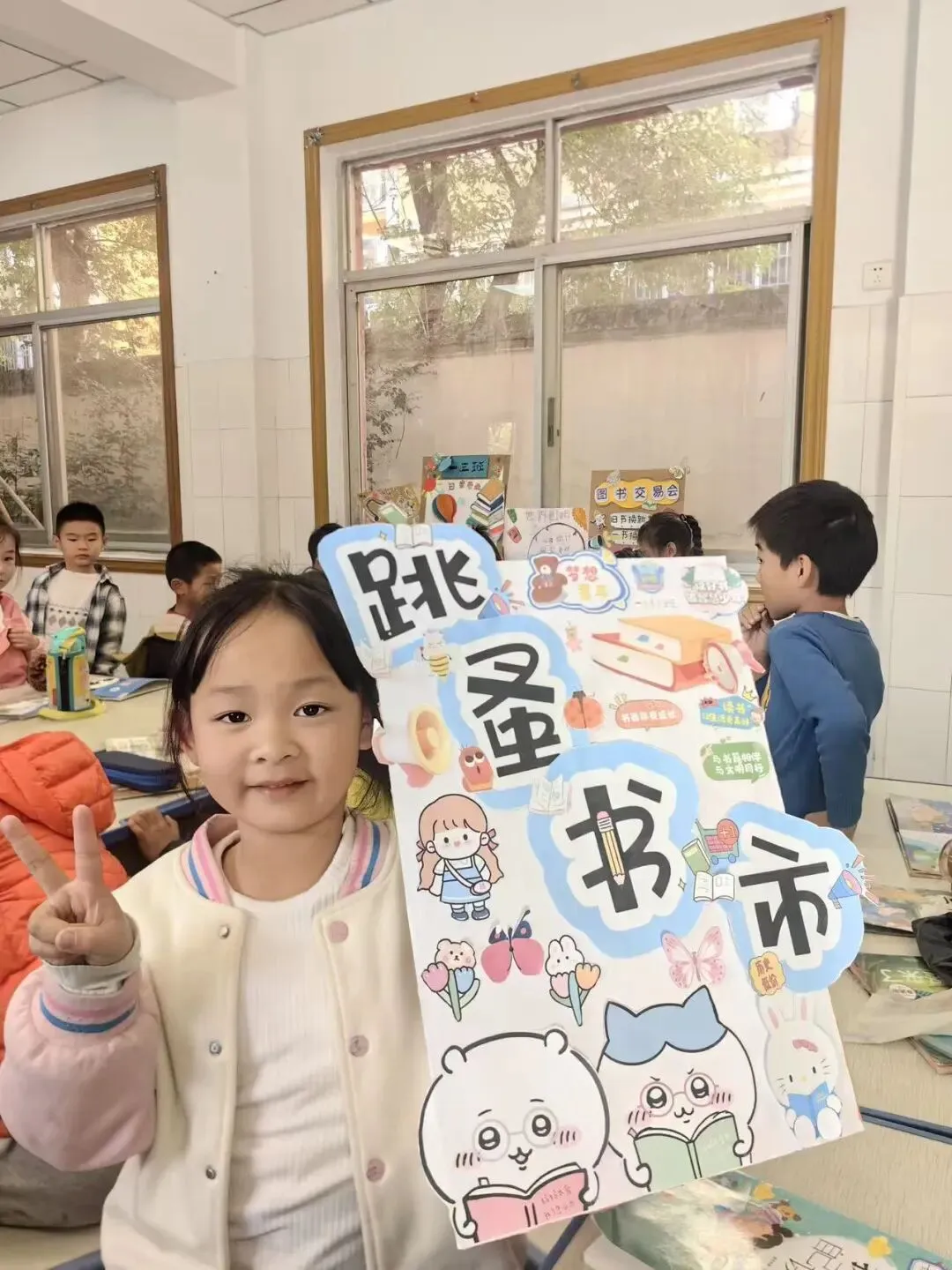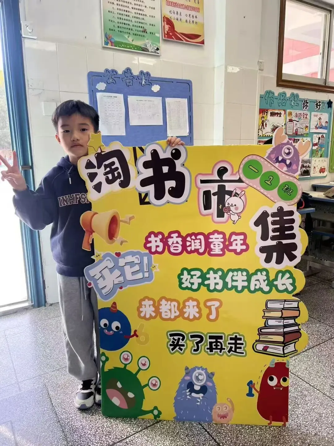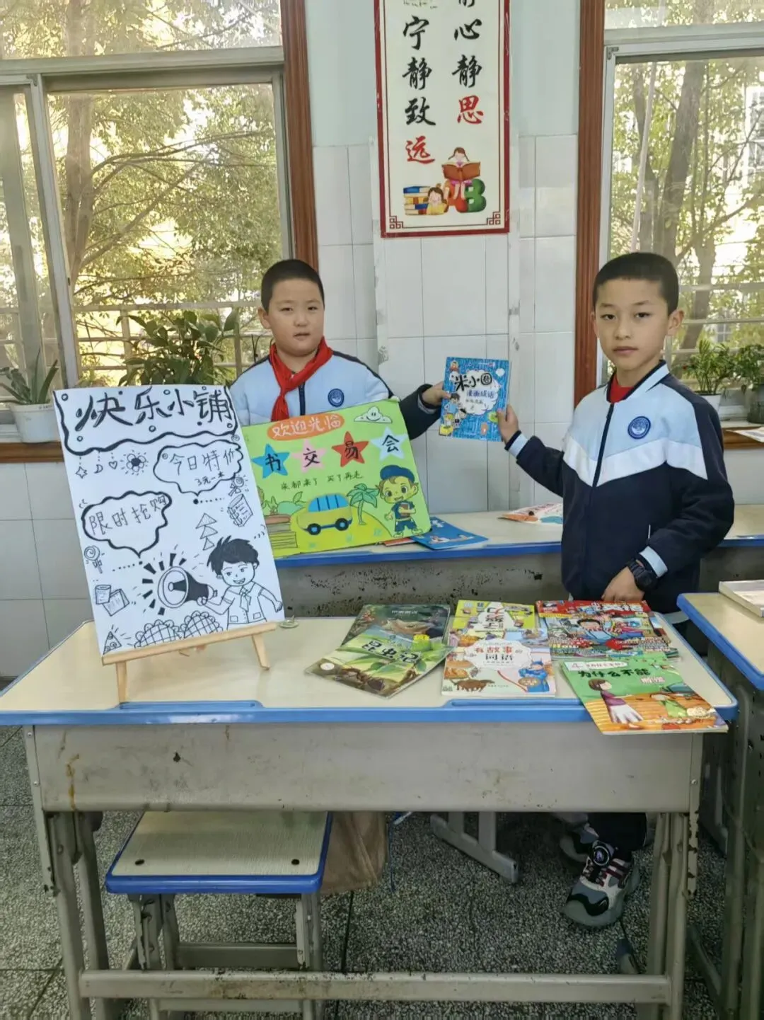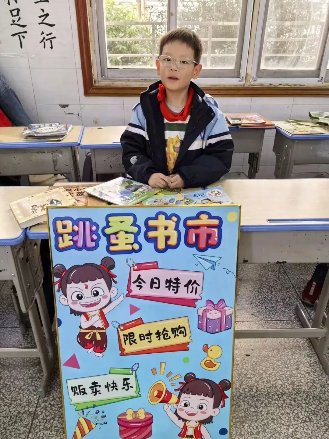 活动一开始,各个班级的“创意书店”就成了校园里最吸睛的风景线。“萌宝杂货店”“智慧杂货铺”……一个个别出心裁的店名,配上一张张由孩子们亲手绘制的精美海报,展现了他们无限的想象力和强大的动手能力。小小的摊位,被精心布置成一个个充满童趣的图书世界,等待着“小顾客”们的到来。