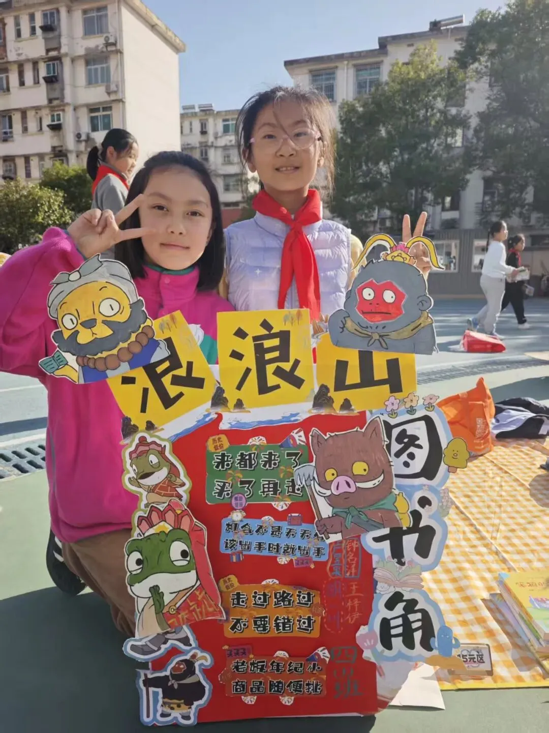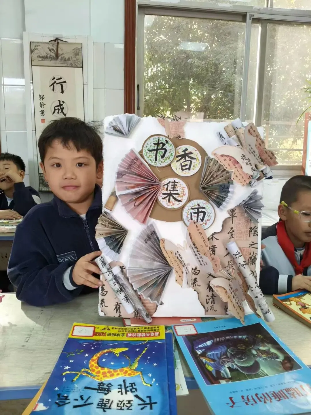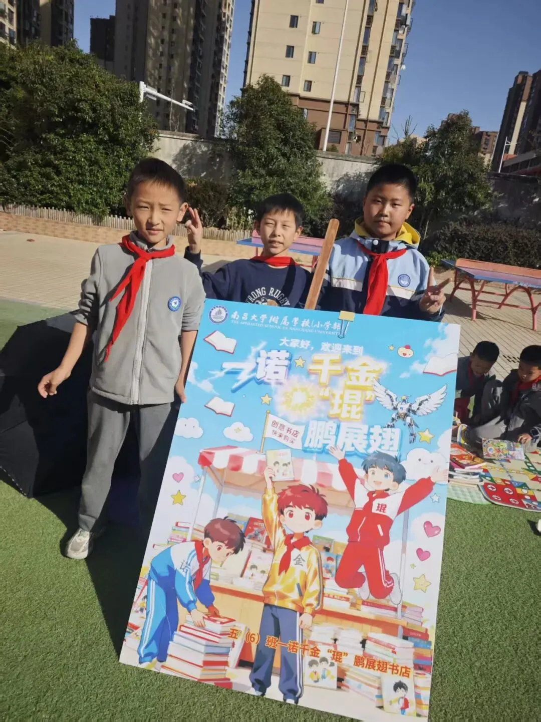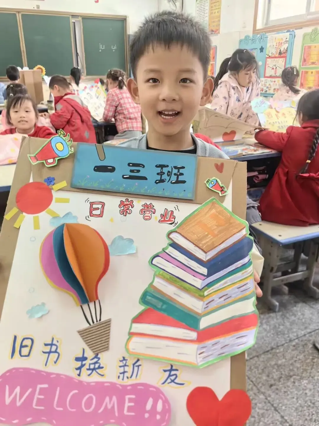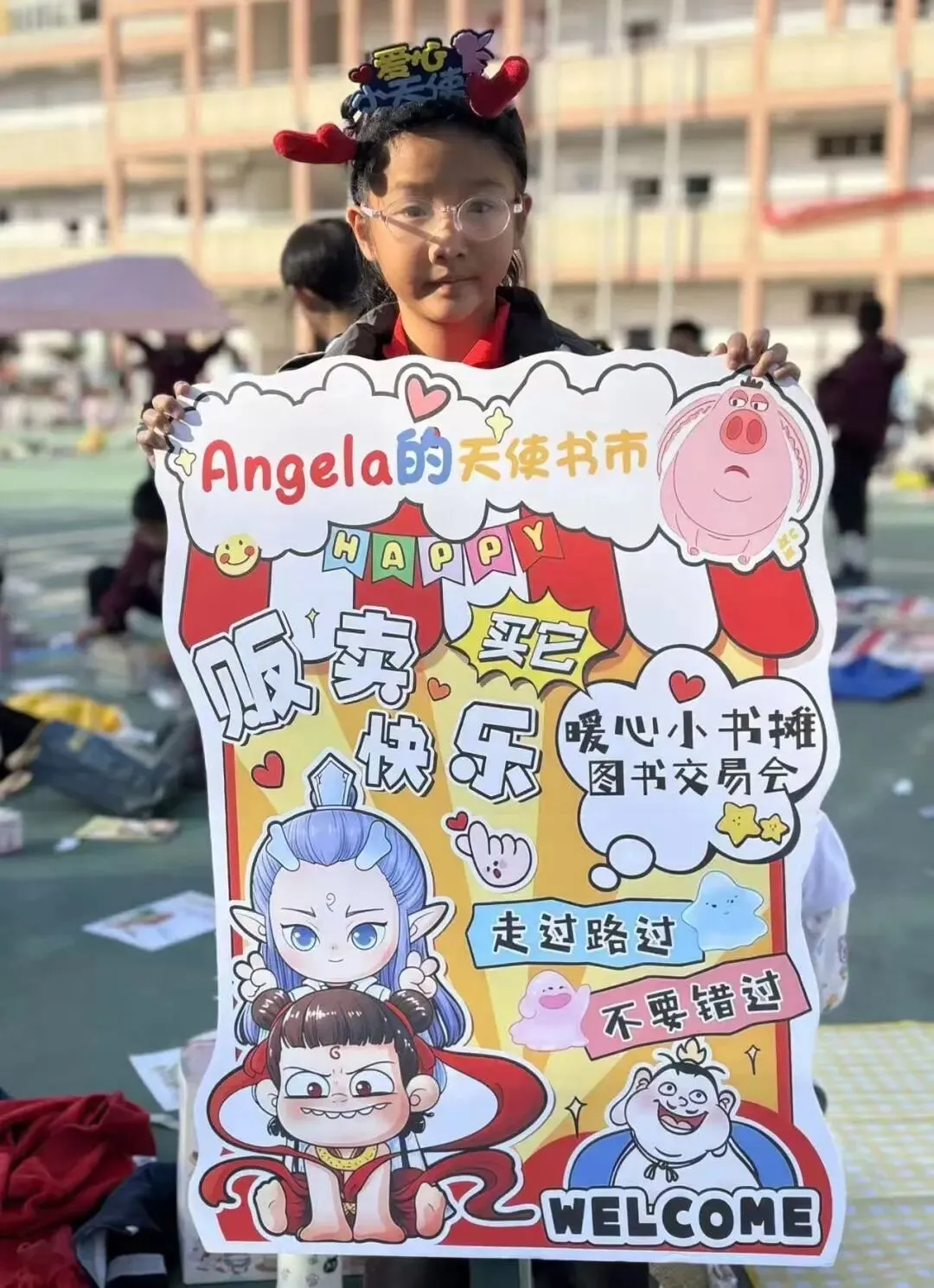 活动一开始,各个班级的“创意书店”就成了校园里最吸睛的风景线。“萌宝杂货店”“智慧杂货铺”……一个个别出心裁的店名,配上一张张由孩子们亲手绘制的精美海报,展现了他们无限的想象力和强大的动手能力。小小的摊位,被精心布置成一个个充满童趣的图书世界,等待着“小顾客”们的到来。