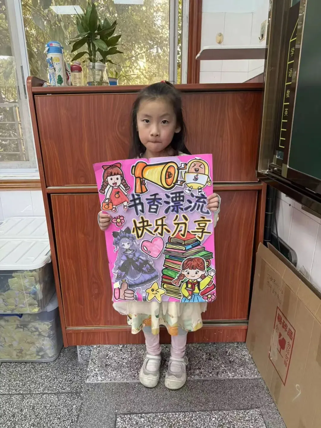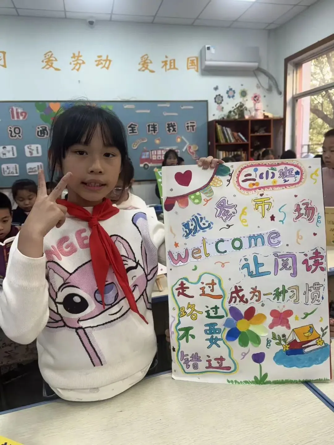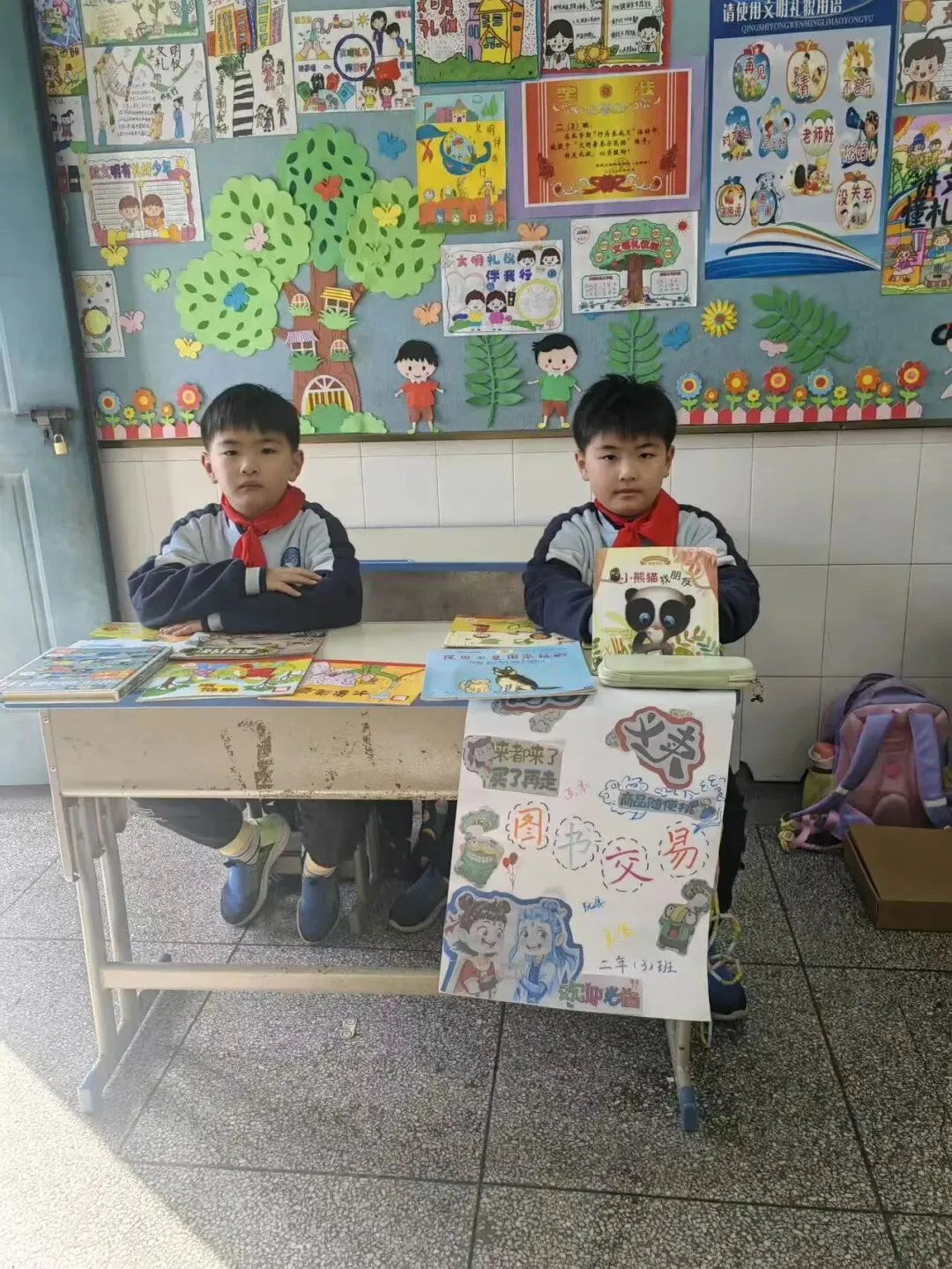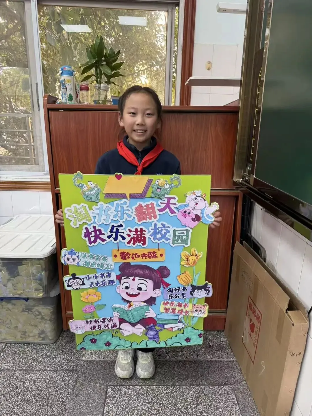 活动一开始,各个班级的“创意书店”就成了校园里最吸睛的风景线。“萌宝杂货店”“智慧杂货铺”……一个个别出心裁的店名,配上一张张由孩子们亲手绘制的精美海报,展现了他们无限的想象力和强大的动手能力。小小的摊位,被精心布置成一个个充满童趣的图书世界,等待着“小顾客”们的到来。