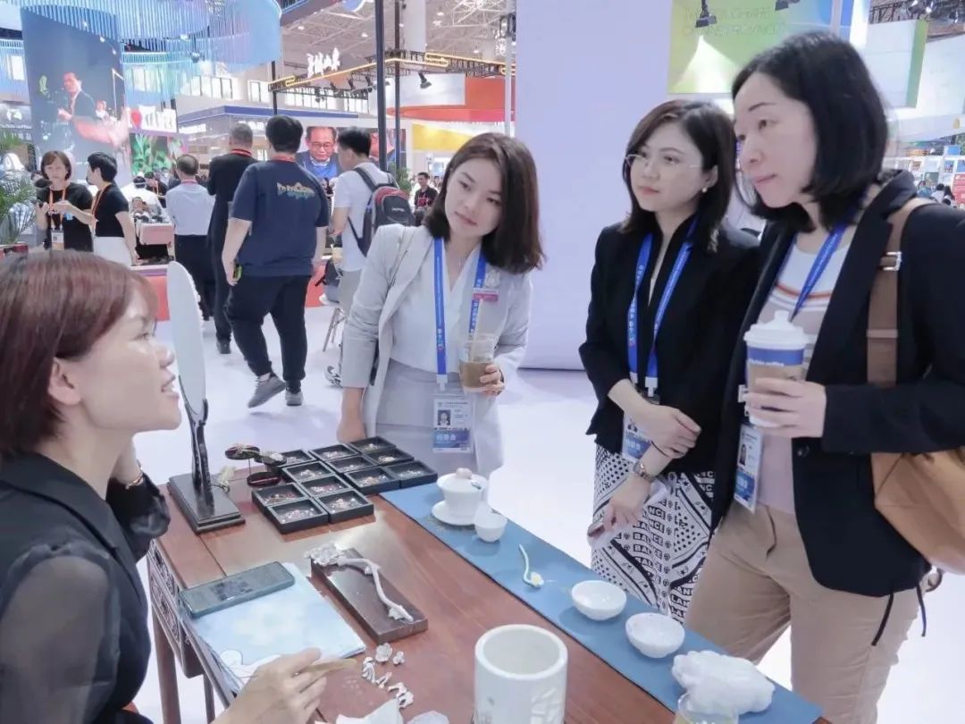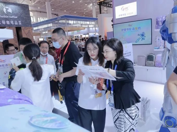徐文峥、王薇娜、陈欣欣律师走访了日本中和旭兴进株式会社、天猫国际展台、珠海免税、斯巴特集团、德国卡赫展台、江苏沂人智能制造科技有限公司、金皇爷榴莲展台等多个展台,与展台工作人员就一般贸易进口、跨境电商、进口免税的政策区别进行深入讨论,对自贸港优惠政策进行了宣传和答疑,探讨未来合作。