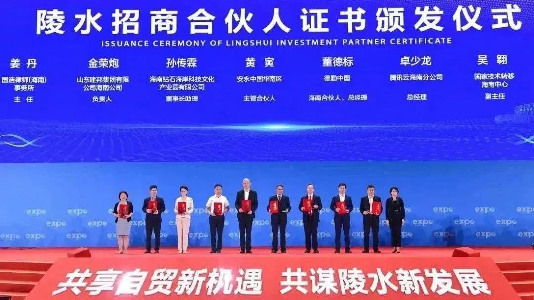 2023年4月13日,陵水黎族自治县在海南国际会展中心举办以“共享自贸新机遇 共谋陵水新发展”为主题的全球招商推介大会,国浩海南荣任“陵水黎族自治县招商合伙人”,国浩管理合伙人、主任姜丹参会并作为代表领奖。多年来,国浩海南围绕“推进依法行政、建设法治政府”的目标,在行政、民商事等领域为陵水黎族自治县党政机关提供法律顾问服务。未来,国浩海南将充分发挥国浩的平台优势和资源,助力陵水构建以“2+7+3+N”为重点的发展格局,实现互利共赢。