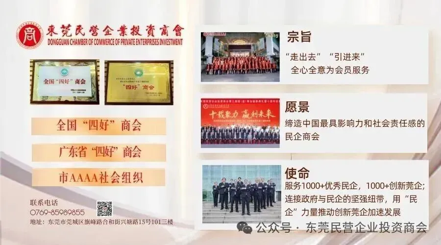 本微信公众号为东莞民营企业投资商会所有,如公众号的文章标题、内容、图片及视频涉及版权或其它问题,请及时与本会联系,我们将在第一时间修改或删除,东莞民营企业投资商会拥有对此声明的最终解释权。