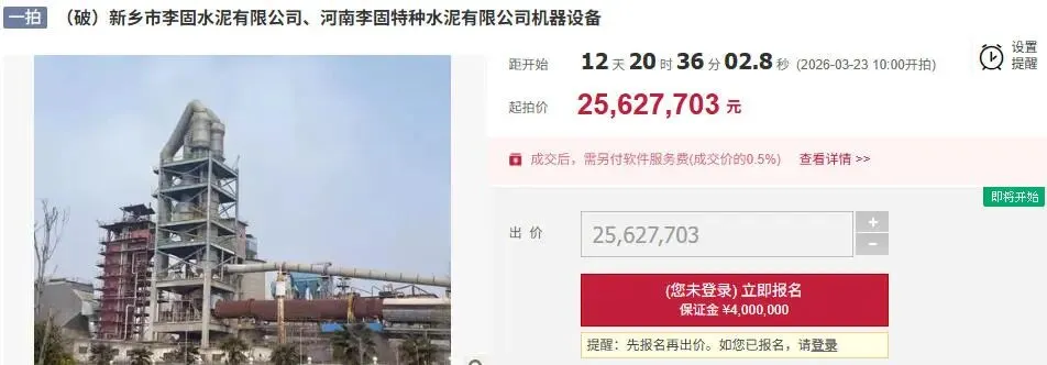 相关信息显示,新乡市李固水泥有限公司、河南李固特种水泥有限公司机器设备公开拍卖,起拍价2562.7703万元。