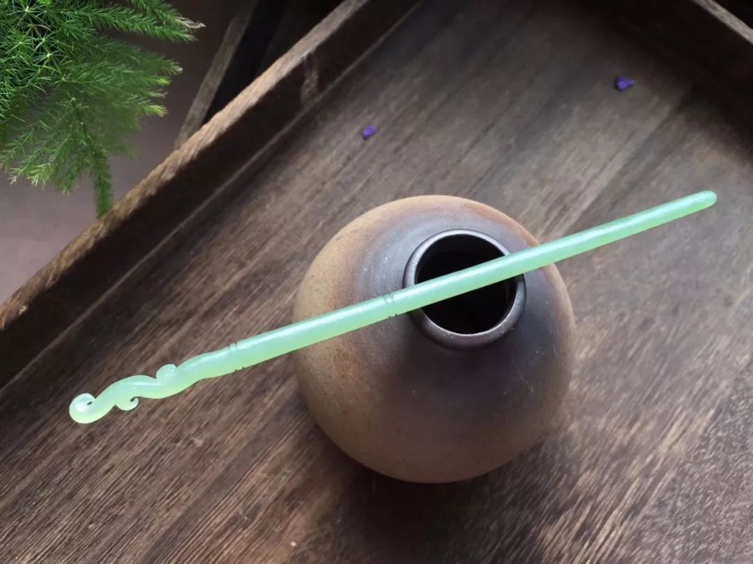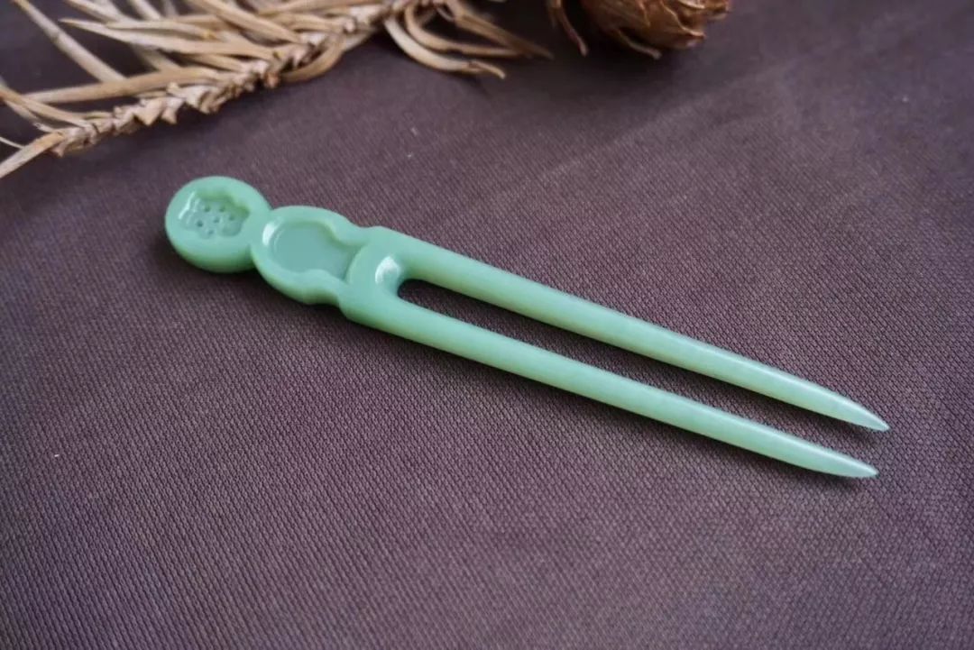 而玉簪就一根,简洁方便,簪头也多有装饰。玉雕中发饰玉簪常见,玉钗不常见,发箍,也很少见。随着文明社会发展,仪容仪表都有了很大变化,玉簪也逐渐消逝,随着这几年古风的再此风靡,金钗玉簪定会慢慢流行起来。