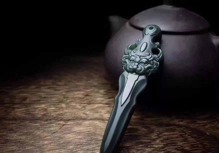 玉雕中也常有做成宝剑的挂件,上面刻有镇邪、辟邪的字样。辟邪意为驱除邪恶,逢凶化吉之意。做人就要堂堂正正,不偏不邪。