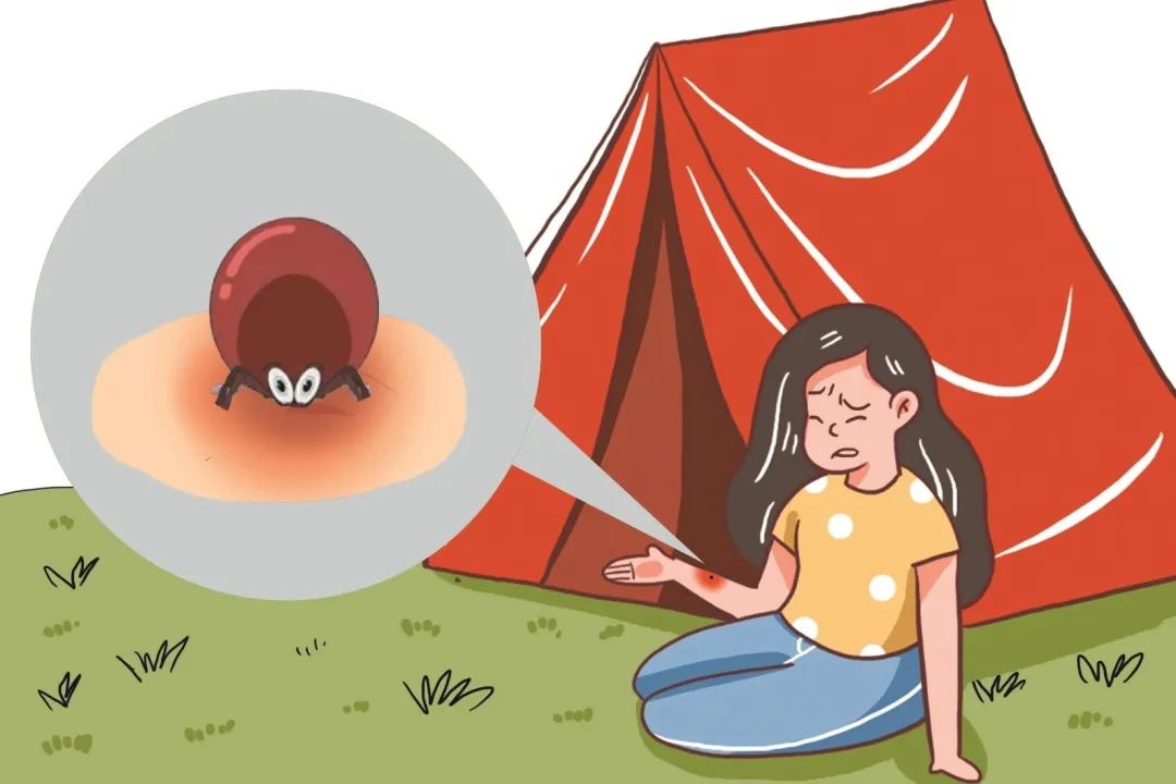 蜱是多种传染病的传播媒介,常通过叮咬将病原体传播给人。我国大部分地区4-9月为蜱活跃期,人被蜱叮咬的机会显著增加。蜱生活在草丛、灌木丛或树木繁茂的地区以及动物体表,人在户外遛狗、露营、园艺、采茶、耕种或打猎可能会与蜱密切接触,在院子或社区里也会接触蜱。蜱常附着在人体的头皮、腰部、腋窝、腹股沟及脚踝下方等部位,吸饱血后虫体膨胀如黄豆大小。蜱叮咬人后可引起过敏、溃疡或发炎等症状,一般较轻微;但蜱传播的一些传染病,如发热伴血小板减少综合征、新疆出血热等病死风险较高。经蜱传播的疾病早期常有类似症状,发热、发冷是最常见症状,其次是瘙痒、头痛、乏力和肌肉酸痛,有的会出现关节疼痛、皮疹等。