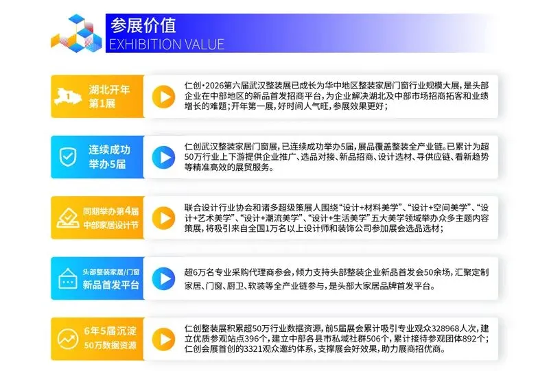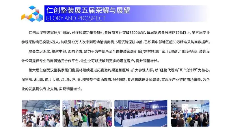 2026第六届中部(武汉)整装家居门窗博览会将于2026年3月15-17日在武汉客厅中国文化博览中心盛大举办,同期举办:2026第六届中部(武汉)厨卫照明/顶墙展,2026第六届中部(武汉)窗帘布艺/装饰新材料展。