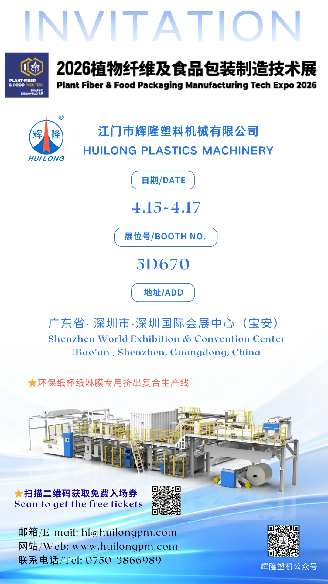 Huilong Plastics Machinery sincerely invites you to vist and exchange at the5D670 ! We are looking forwad to meeting you at the exhibiton and talk about the new future of the industry!