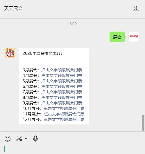 关注“天天展会”可线上预登记免费,现场登记需排队,实名制入场