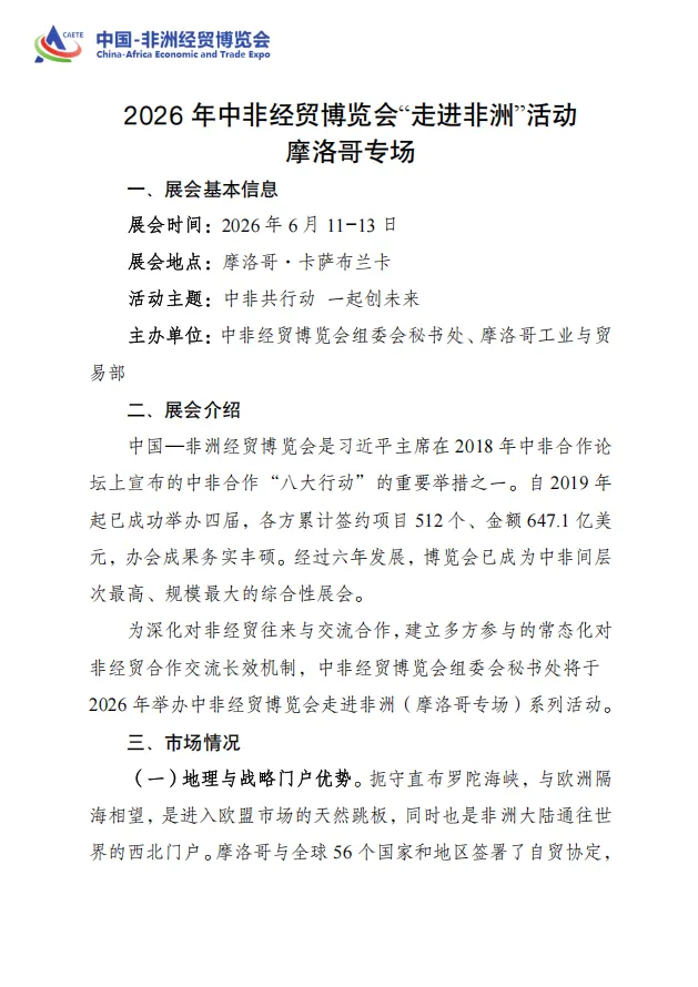 2026年中非经贸博览会“走进非洲”活动 摩洛哥专场