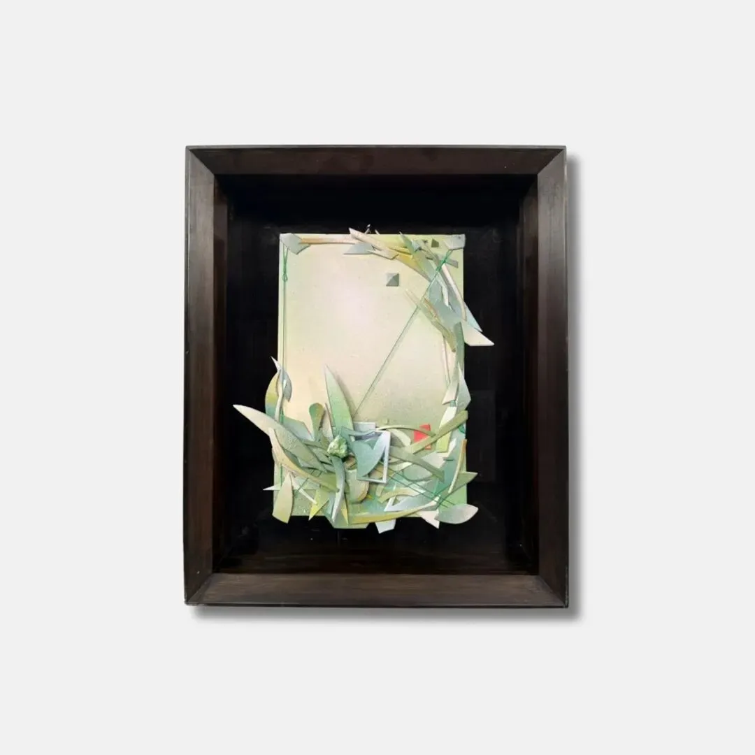 压克⼒板和古董⽊材装框及包装,混合媒介,⾹樟⽊板、