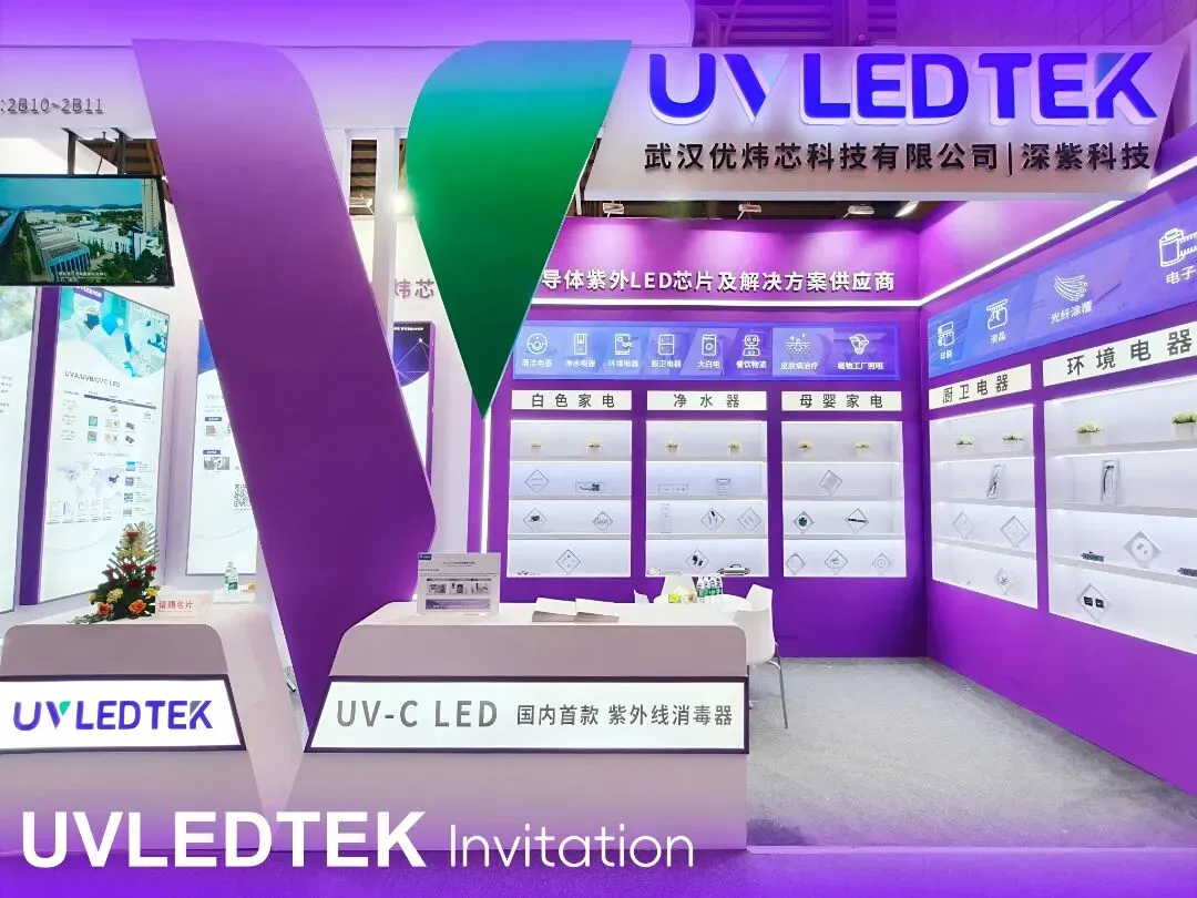 全球深紫外LED技术领军企业武汉优炜芯科技有限公司(以下简称“优炜芯”)携子公司湖北深紫科技有限公司(以下简称“深紫科技”)实力亮相本次展会。