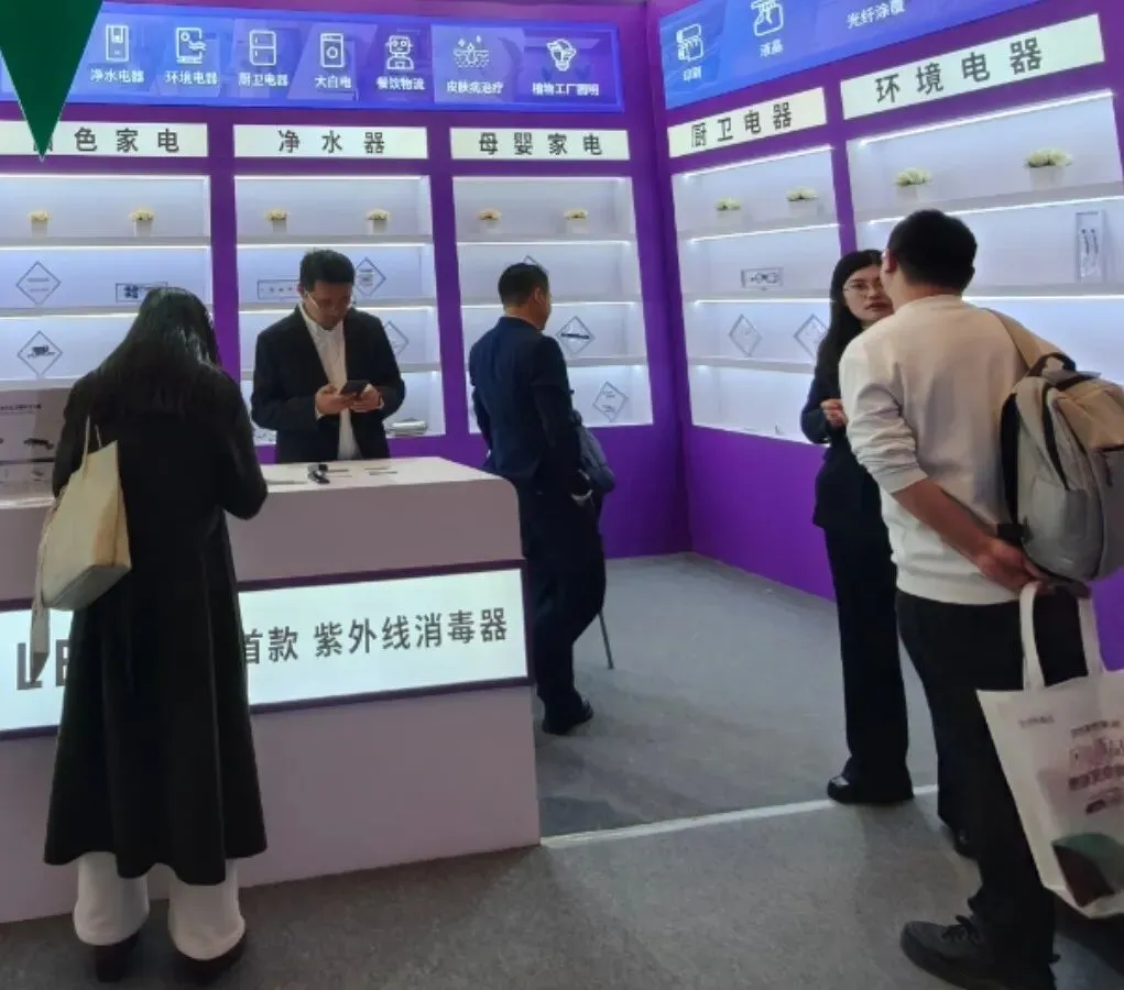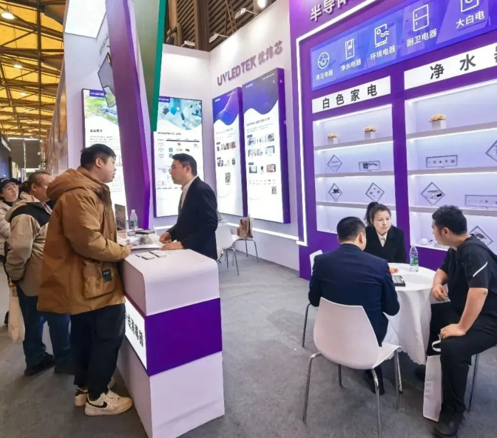 展会现场,优炜芯及深紫科技从大白电、净水器、母婴家电、厨卫电器、环境电器等多个应用领域全面展示配套产品,通过“表面消毒-空气消毒-水消毒”三个维度,推动智能家电从“基础清洁”向“主动健康防护”升级,可实现99.999%的超高灭菌率,产品采用模块化设计,支持灵活适配不同电器结构,大幅降低配套成本。