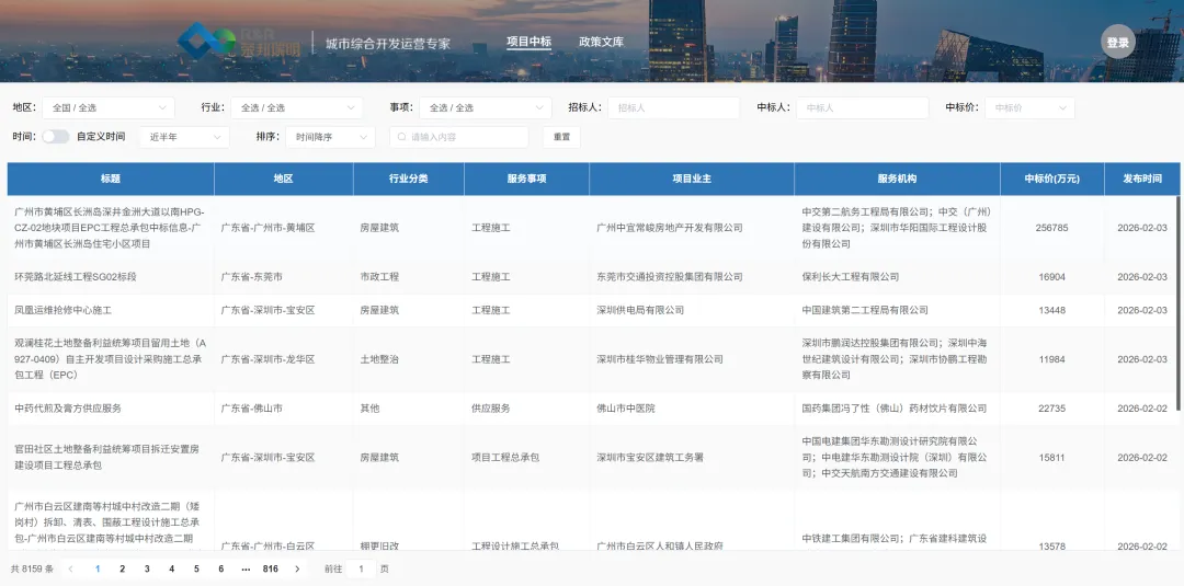 就拿我司所处的基础设施和城市建设领域而言,举一些我们自己遇到的或客户提出的问题,比如:广东省过去三年公开招标的项目成交规模是多少?主要的中标人是哪些公司?央企、国企、民企各自的中标规模和占比是多少?各行业竞争力较强的公司是谁?新建长度不低于200公里的高速公路项目都是哪些公司中的标?未来的项目机会在哪里?等等。