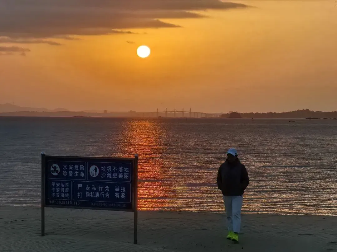 日出的壮美,让所有的寒冷都变得值得。当霞光铺满海面的那一刻,仿佛时间按下了暂停键,我和阿香、老王、澎澎不约而同地掏出手机,定格下这震撼人心的一刻,也定格下我们并肩赴约的温暖。