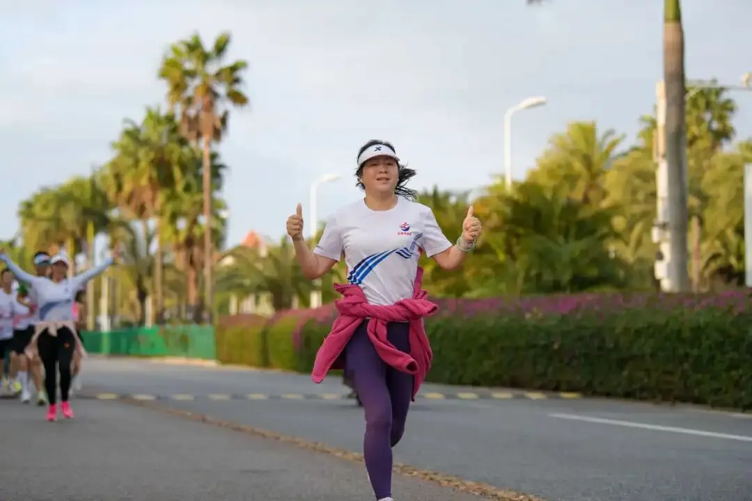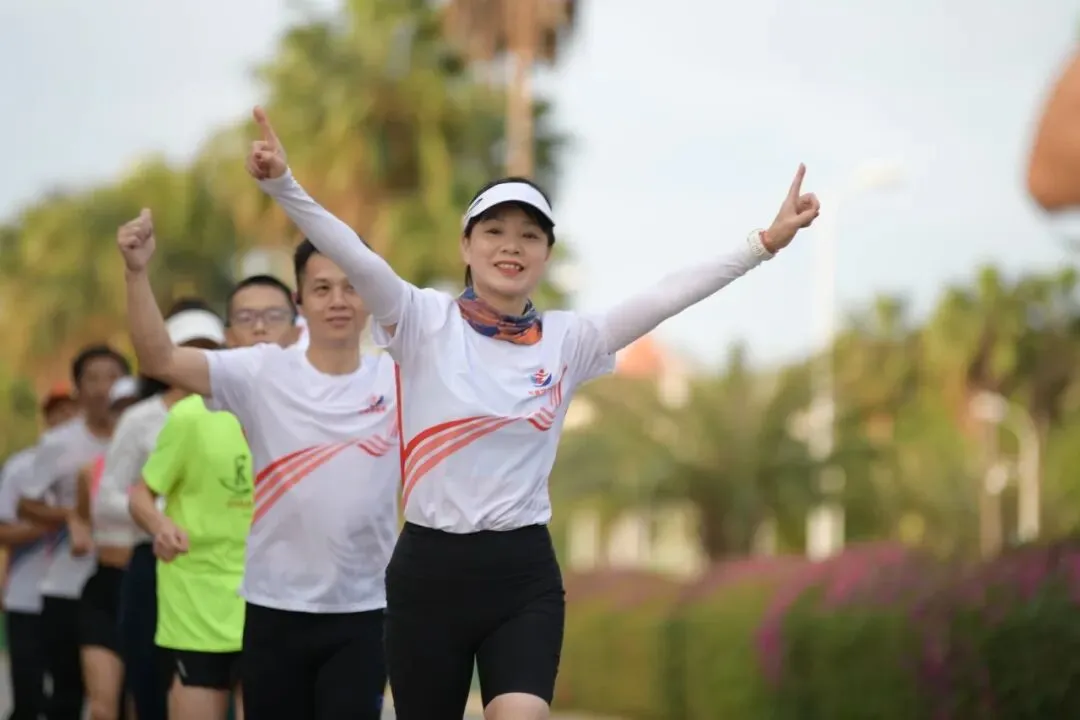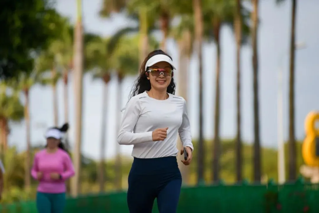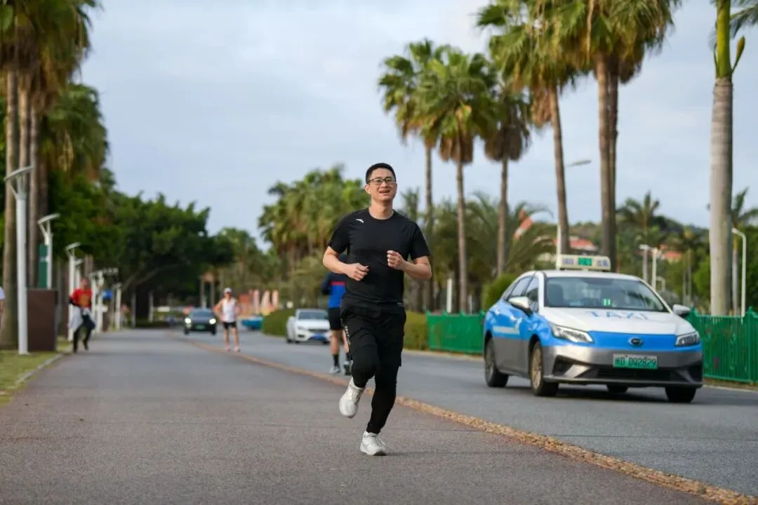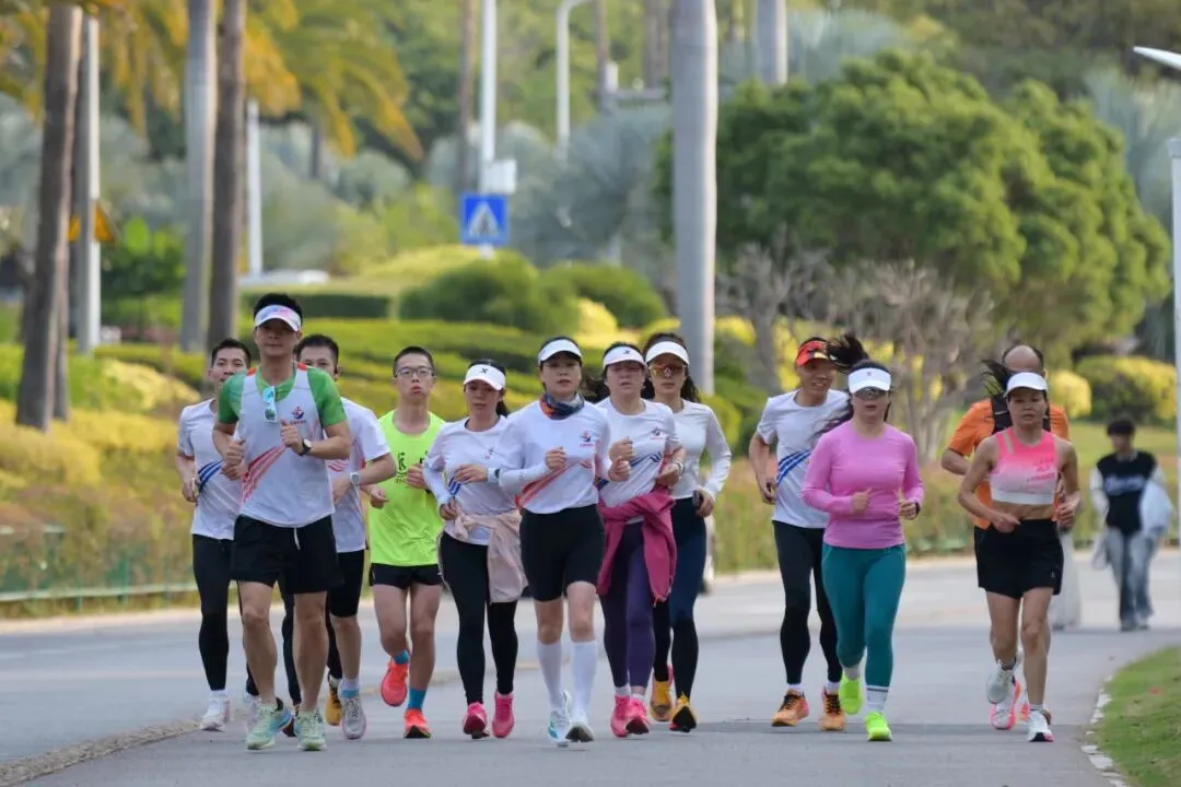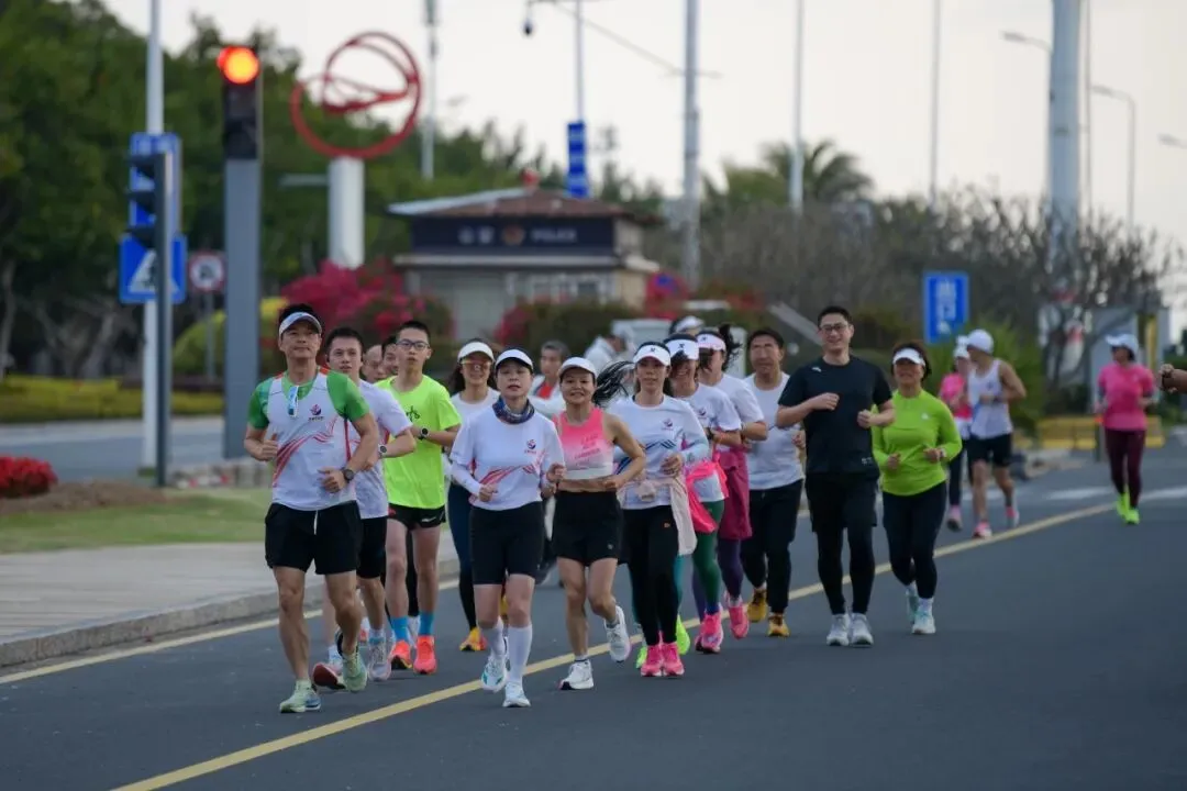 森林教练带队热身,干练热辣的装扮与饱满活力,成为环岛路上最亮眼的风景。