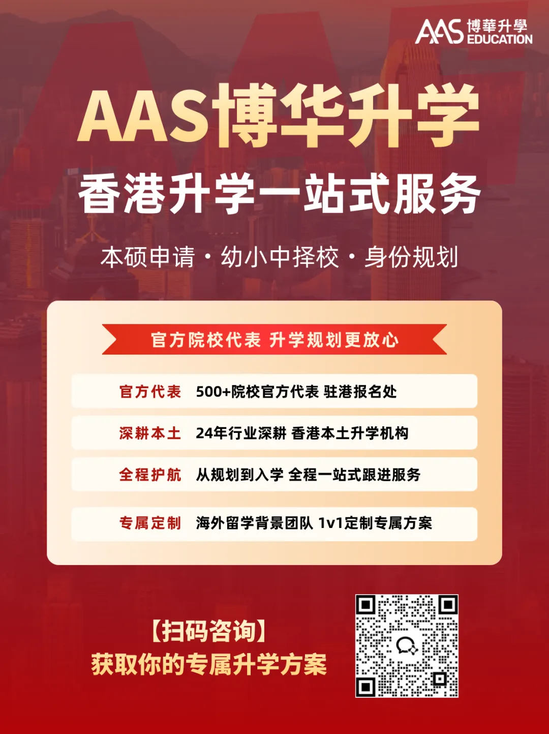 AAS博华升学是拥有24年经验的香港本土升学机构,专注香港中小学择校一站式服务,深耕升学规划、面试培训,熟悉香港各校招生规则与录取偏好。