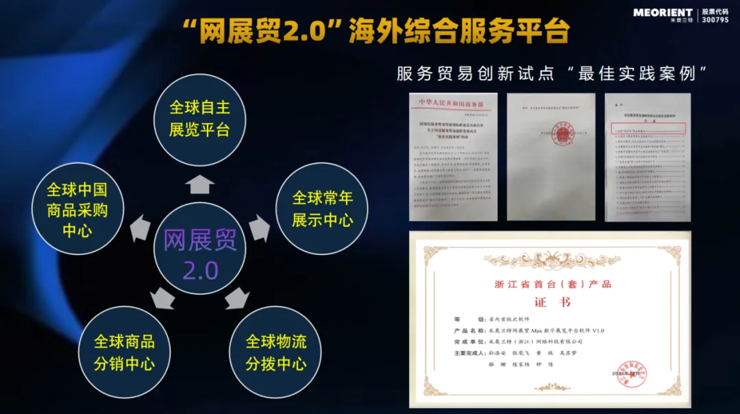 本次进博会上,米奥兰特将重点呈现全新升级的“网展贸2.0”服务体系,通过全球自主展览平台、全球中国商品采购中心、全球商品分销中心、全球常年展示中心、全球物流分拨中心这五大核心板块构建“会展+AI+供应链”三位一体服务体系,打造覆盖全球的海外综合服务生态。