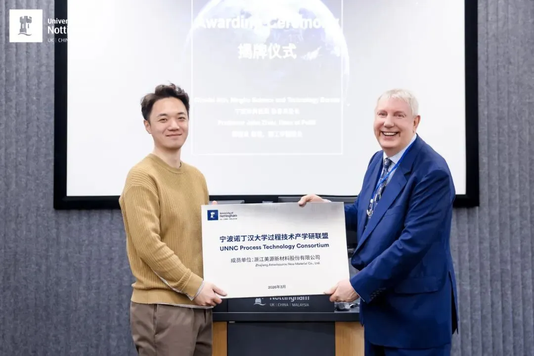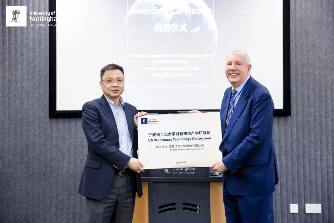 3月11日,宁波诺丁汉大学过程技术产学研联盟正式揭牌成立。该联盟由理工学院化学与环境工程系主导发起,依托浙江省一流学科“化学工程与技术”的科研积淀,联合长成新能股份有限公司、万华化学宁波高性能材料研究院、江苏清泉化学股份有限公司、宁波酶赛生物、浙江美源新材料及氧化科学实验室有限公司等六家行业领军企业共建,旨在打通学术研究与产业应用之间的“最后一公里”,实现“产业难题破解、专业人才培养、知识与工具革新、可持续发展推动、学生机遇拓宽”五大核心目标。