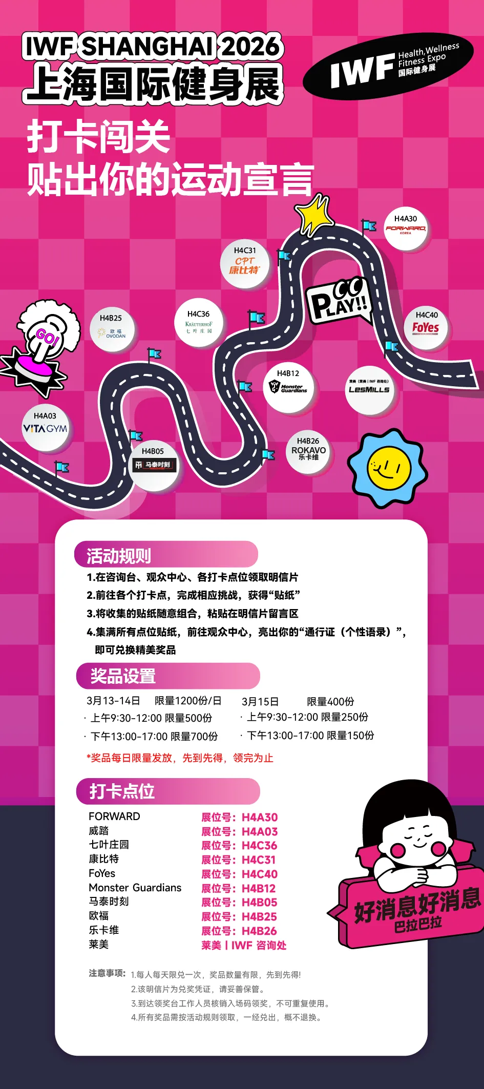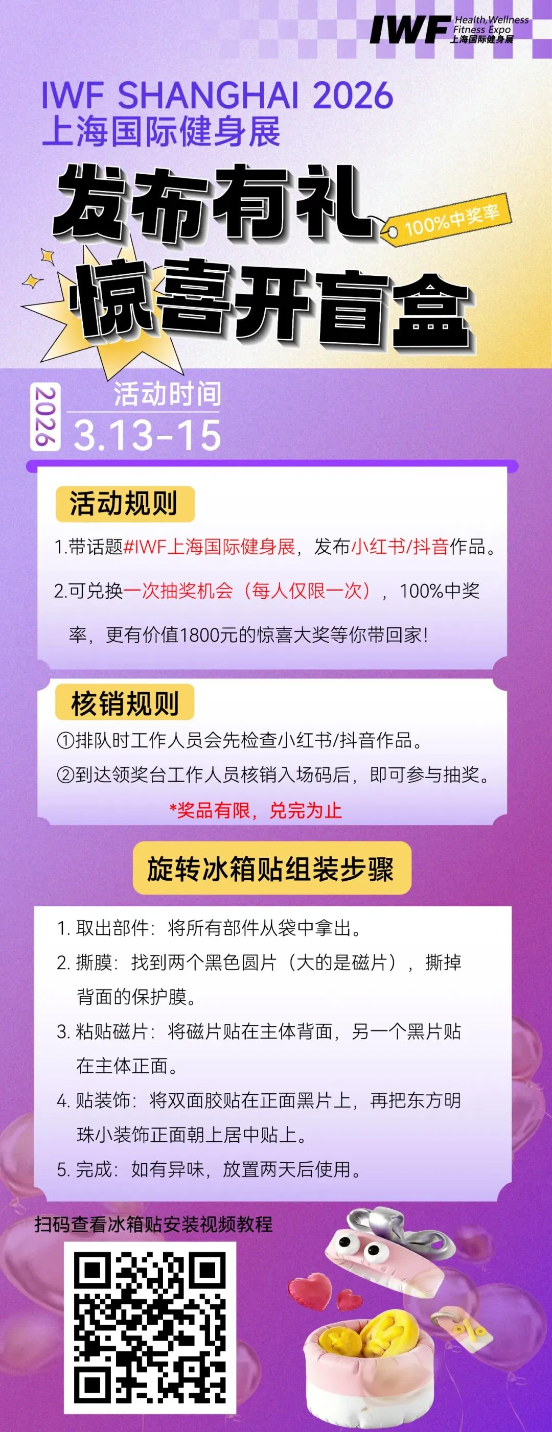 *奖品以现场实物为准,数量有限,先到先得。观众抽奖活动最终解释权归IWF所有。