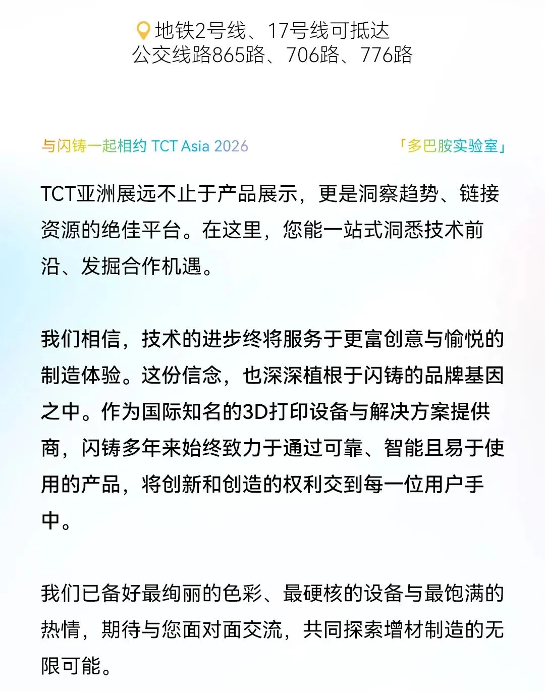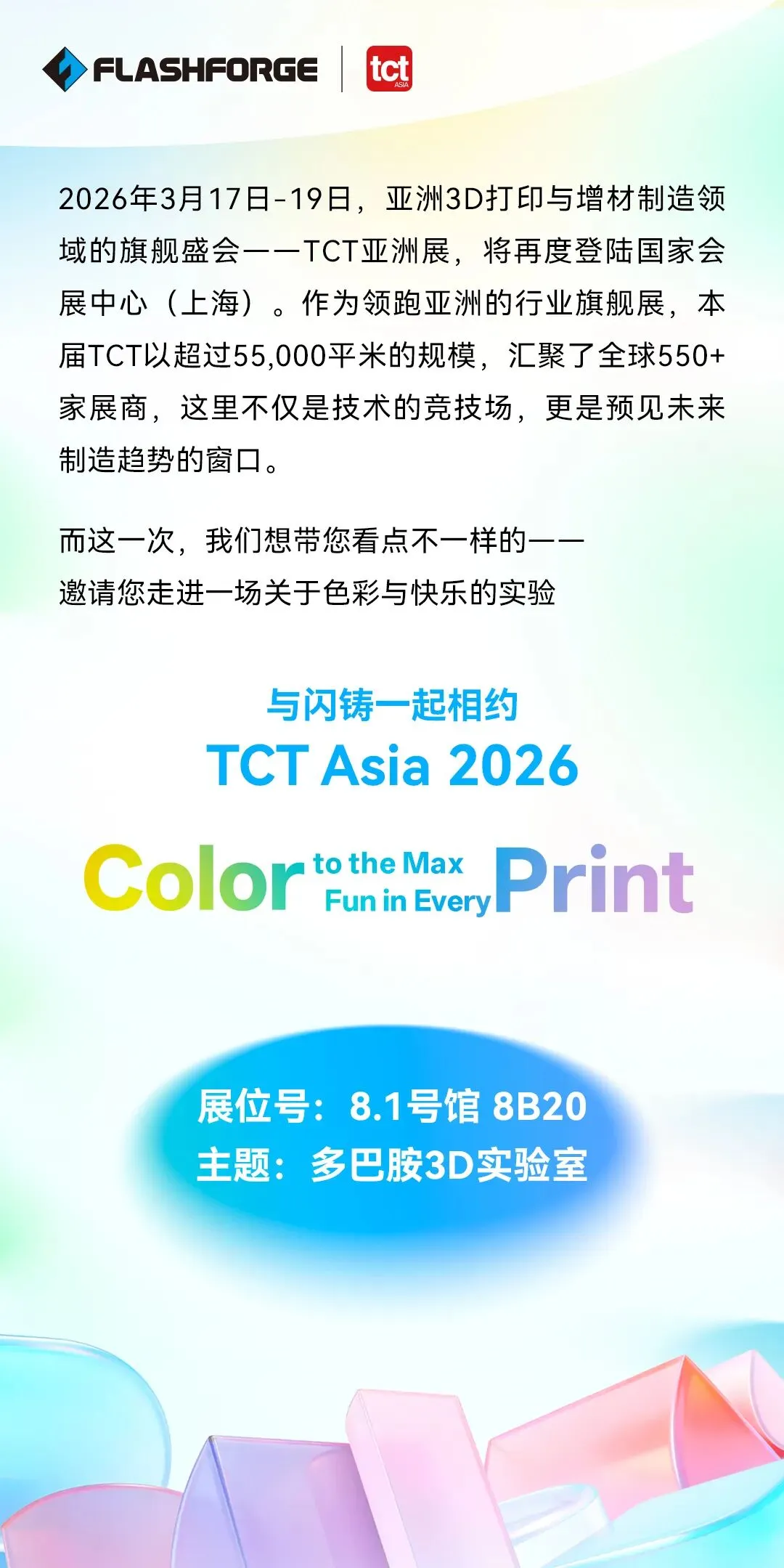 展会邀请 | 2026TCT亚洲展,闪铸邀您共赴「多巴胺3D实验室」之旅