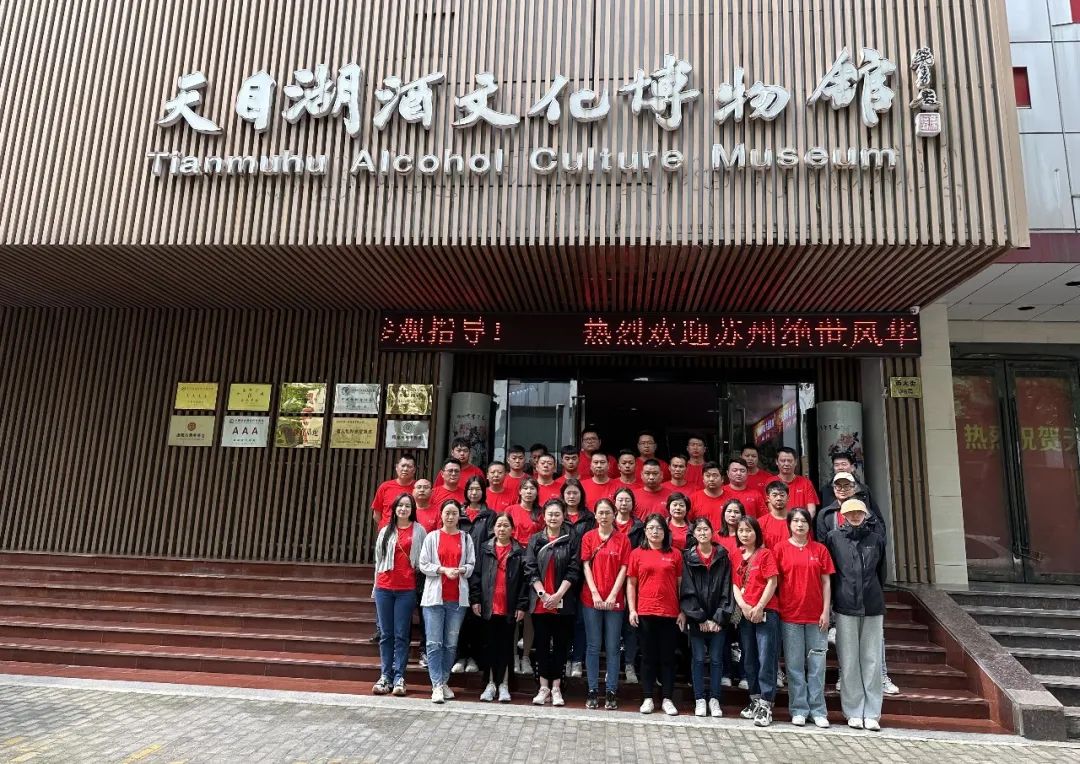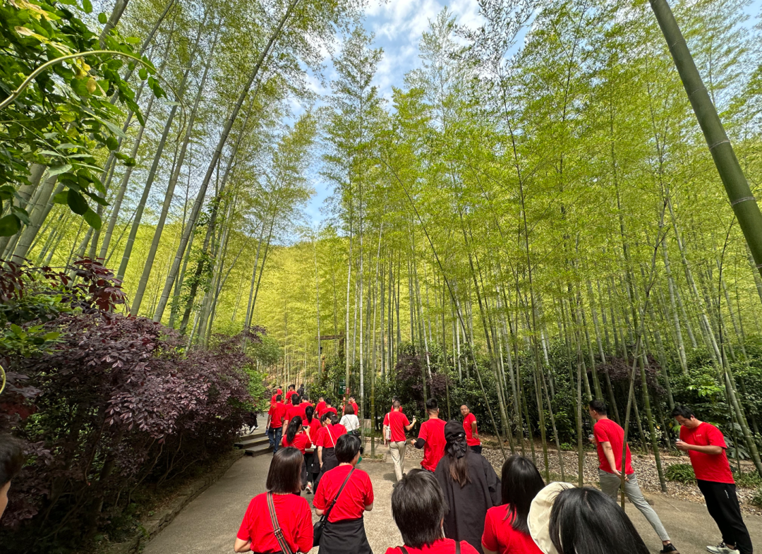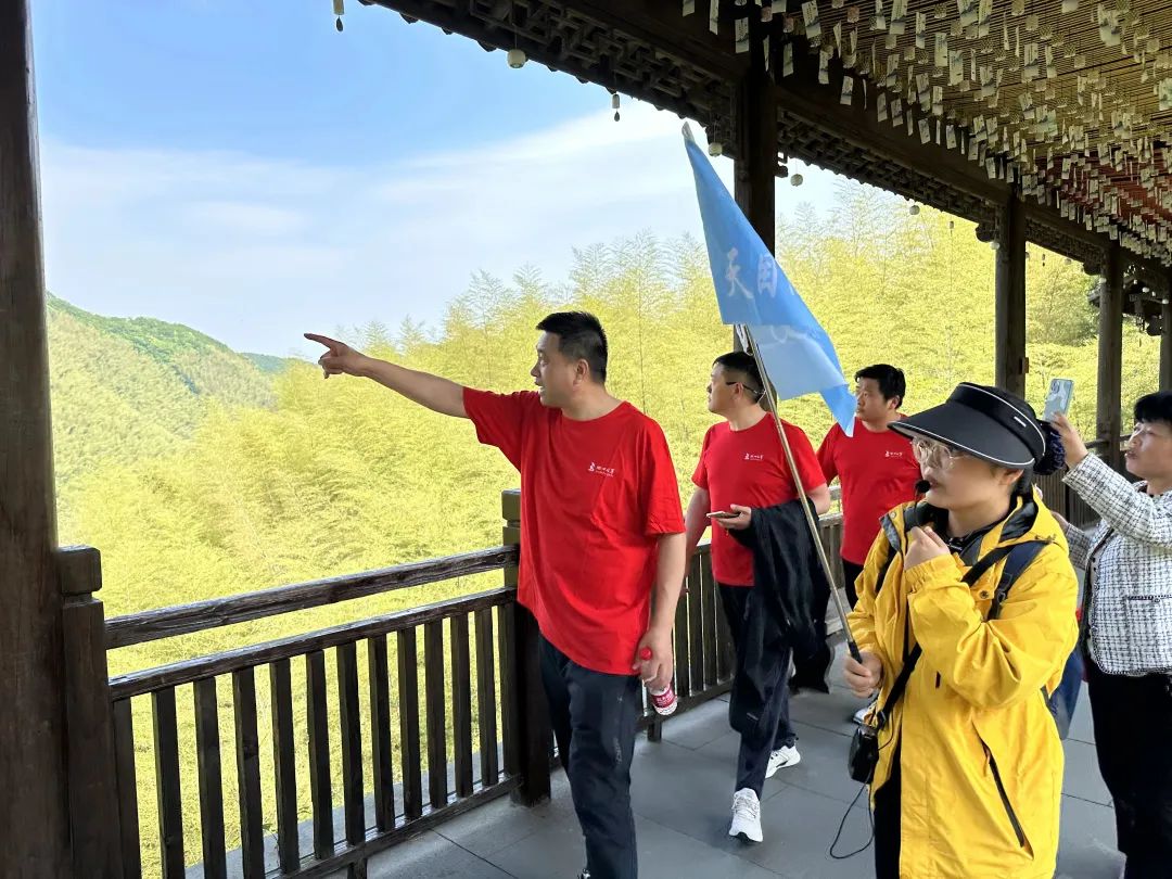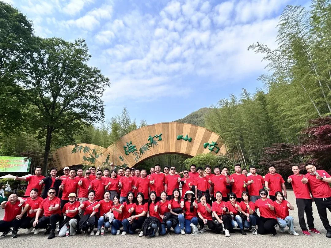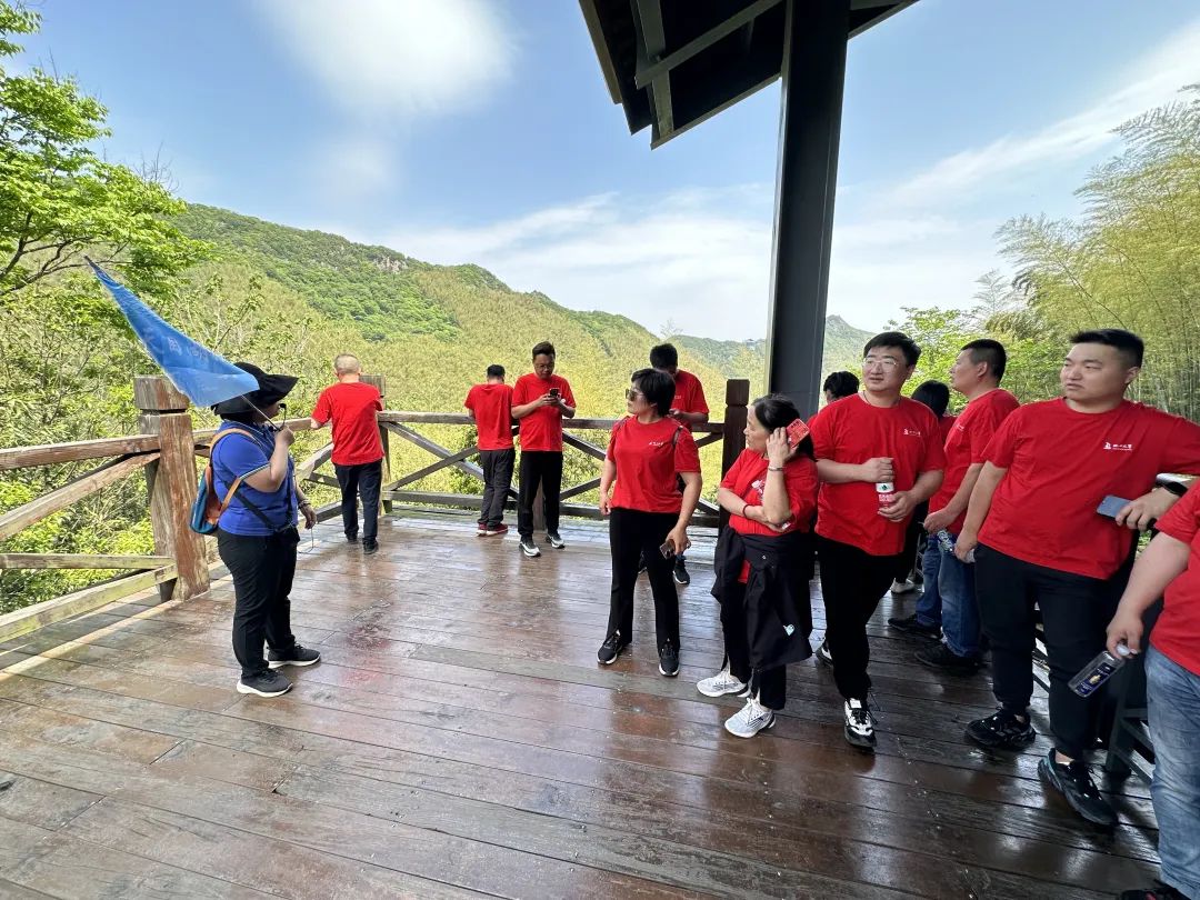 4月28日上午9点30分,苏州绝世风华酒业有限公司全体员工抵达溧阳天目湖南山竹海景区。