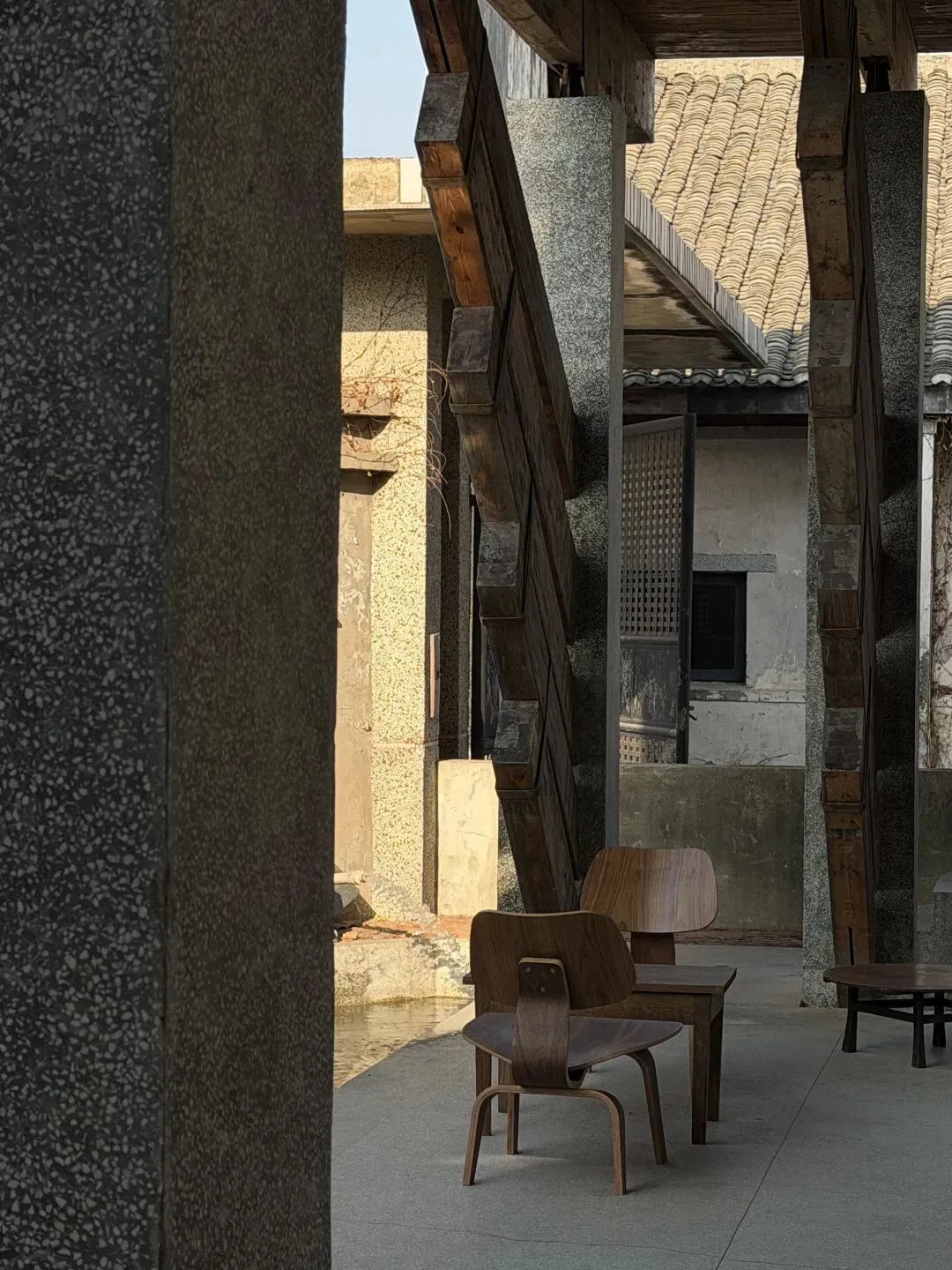 2026年1月16日,凌晨4:30出门,5:52上海虹桥-宁波。9:25到达黑石粮仓,正值早晨的第一缕阳光开始斜斜摄入粮仓中间的小广场。