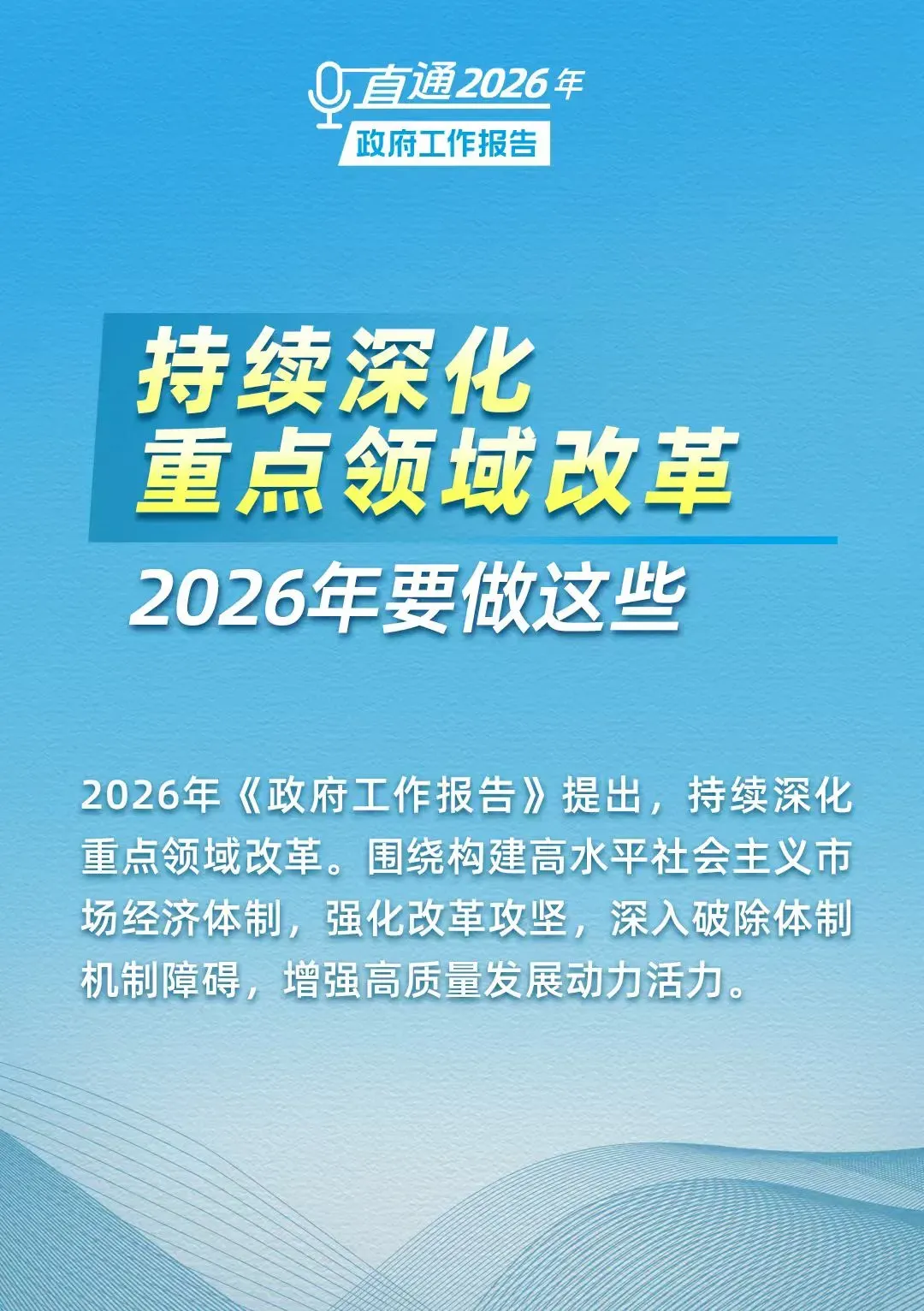 2026年《政府工作报告》提出,深化重点领域改革。在纵深推进全国统一大市场建设方面,将制定全国统一大市场建设条例,深化招标投标体制机制改革,加强反垄断、反不正当竞争,深化要素市场化配置综合改革试点等。